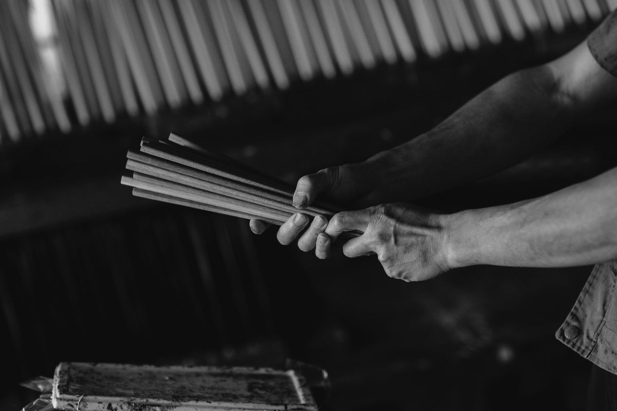 漢数字「一」を由来に持つ、HAJIME。この名前には、生産地から食卓までが一本でつながってはじめて完成する箸という意味が込められています。カワイの箸作りには多くの人が関わっています。まだ見ぬ魅力ある商品を、ゼロから企画する人。手間と心を尽くしてその企画を形にする人。完成した商品の価値を世の中に伝え、届ける人。そして日々の食卓でそれを大切に使う人…。原料である一本の木地は、たくさんの手から手へと渡り、丁寧に育まれ、やがて一膳の箸へと姿を変え、皆様の手にお届けすることを大切にしております。