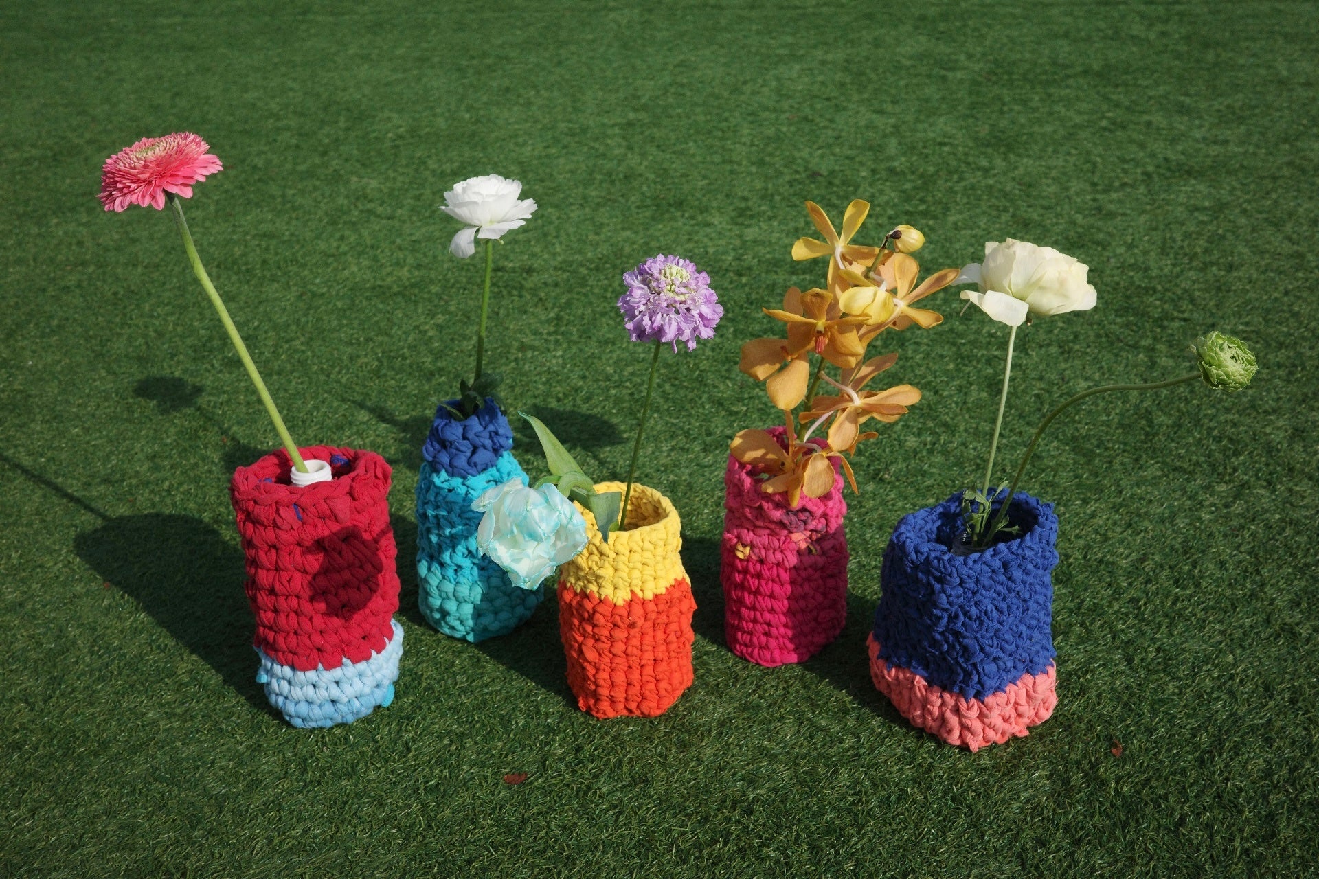 「捨てる」のではなく「生まれ変わらせる」アイディアを届けるため、Tシャツヤーンで作る花瓶カバーなどのワークショップを開催。行政や企業とコラボレーションし、洋服の新しい可能性を楽しく学べる場をつくります。