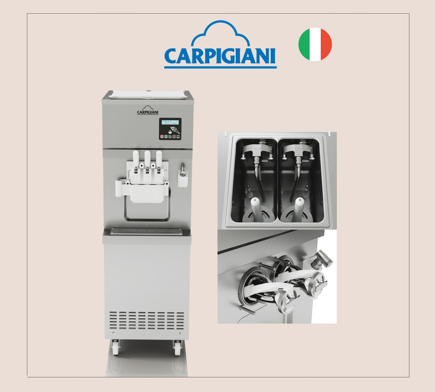 ポップアップストアではmilkkissソフトクリームを提供する上で必要不可欠なイタリア製カルピジャーニ社の最新型ソフトクリームサーバーを設置。