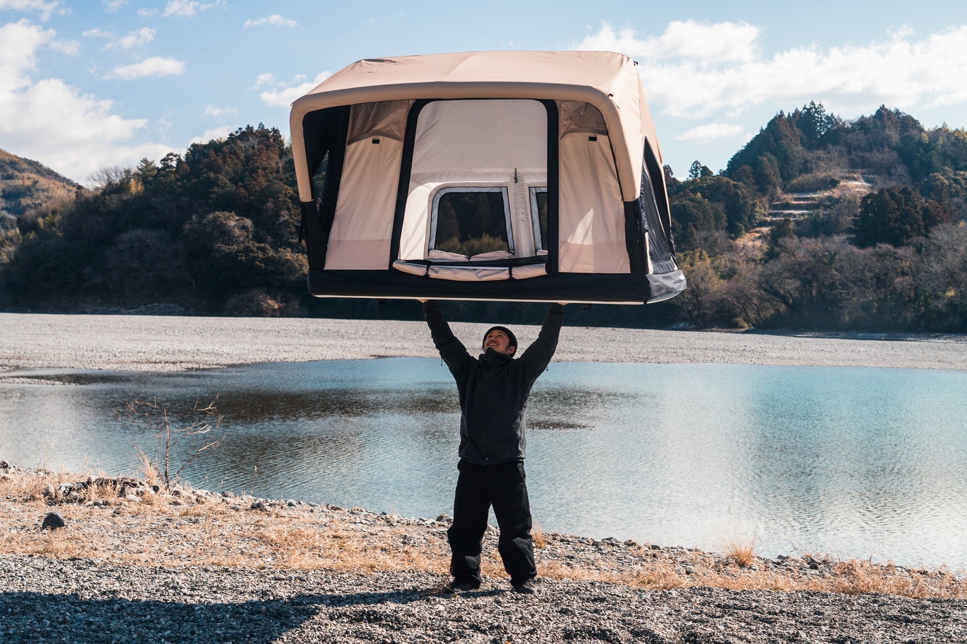 「Peak Pod」は、取り外しや持ち運び、地上での使用が可能となり、従来のルーフトップテントにはなかった全く新しいタイプのテントです。