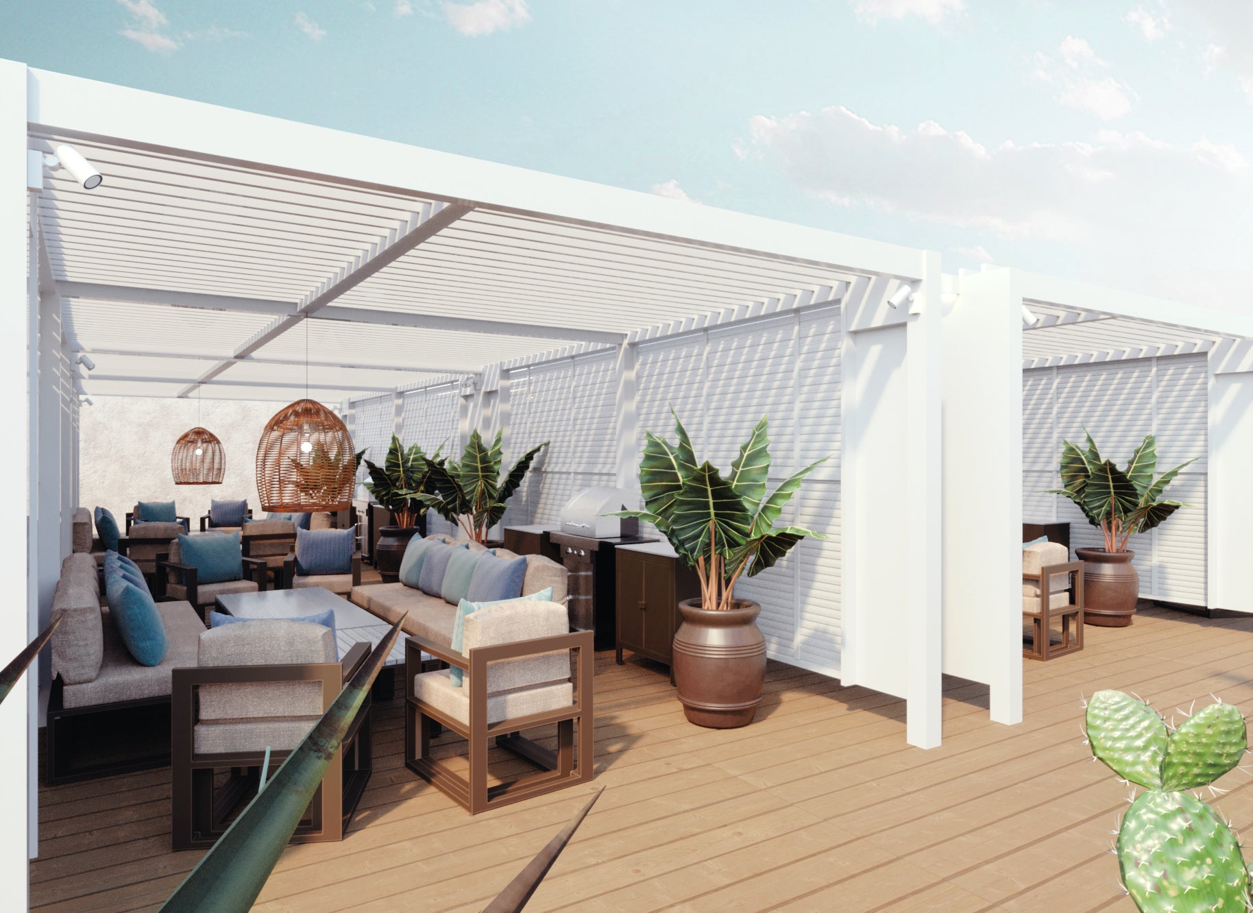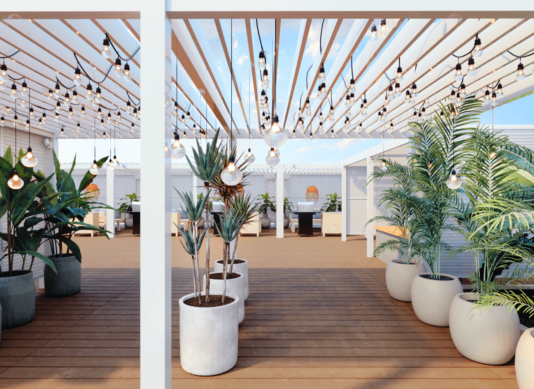 このBBQ施設は、同施設4階に出店している人気スーパーマーケット「食生活♥♥ロピア 博多ヨドバシ店」で新鮮な食材を購入し、そのまま屋上で手軽にBBQが楽しめるという新しいスタイルの施設です。都心のど真ん中にいながら、リゾート感と開放感を味わえる非日常空間を実現しました。