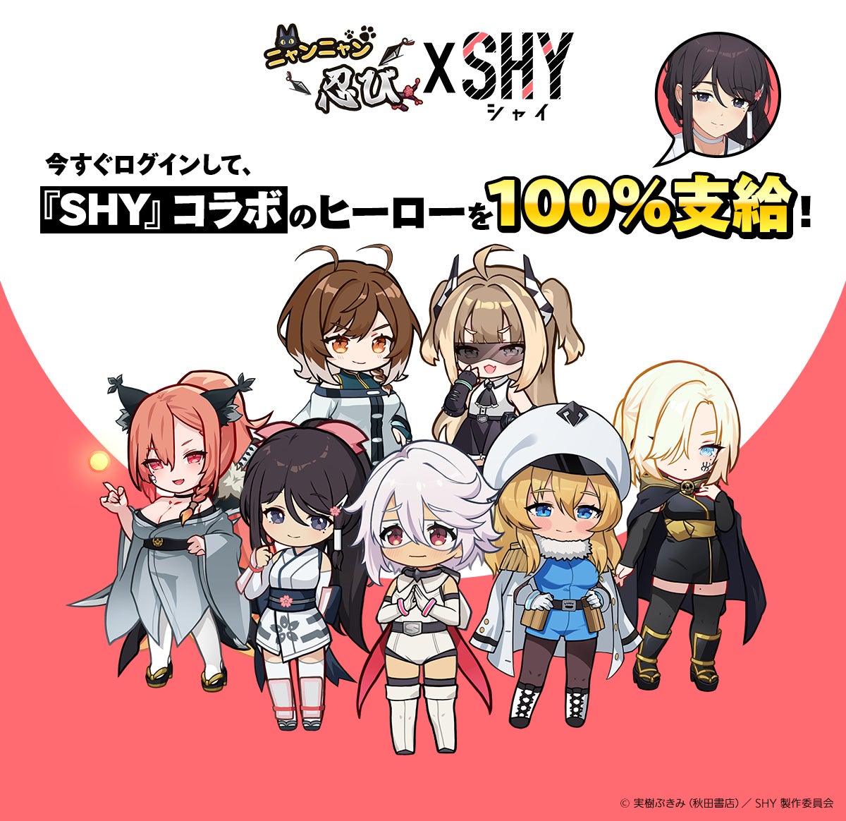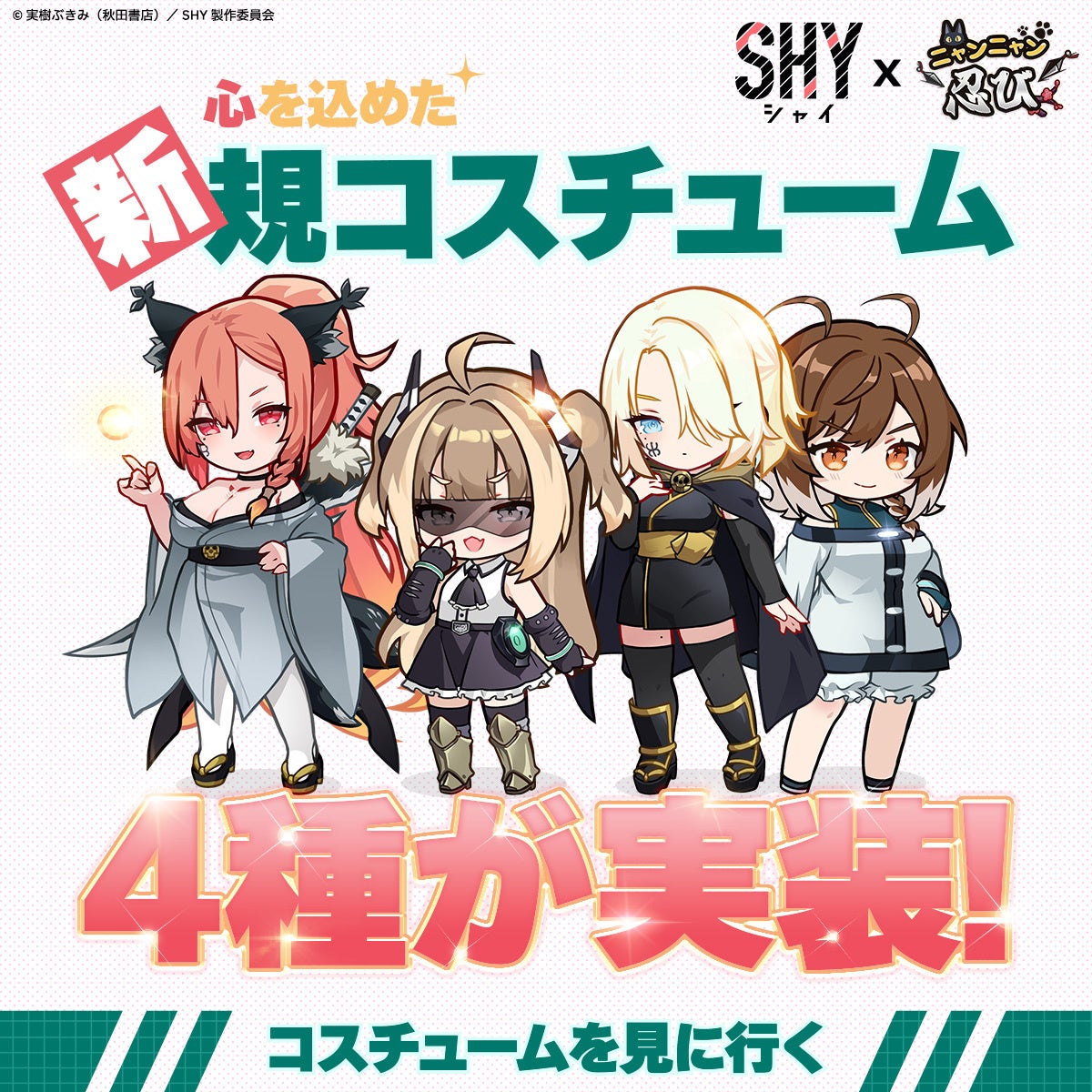 『ニャンニャン忍び』 X 『SHY』初コラボレーション全てのユーザーに「天王寺 曖」を100%支給 『SHY』の人気キャラおよびコラボコスチューム実装