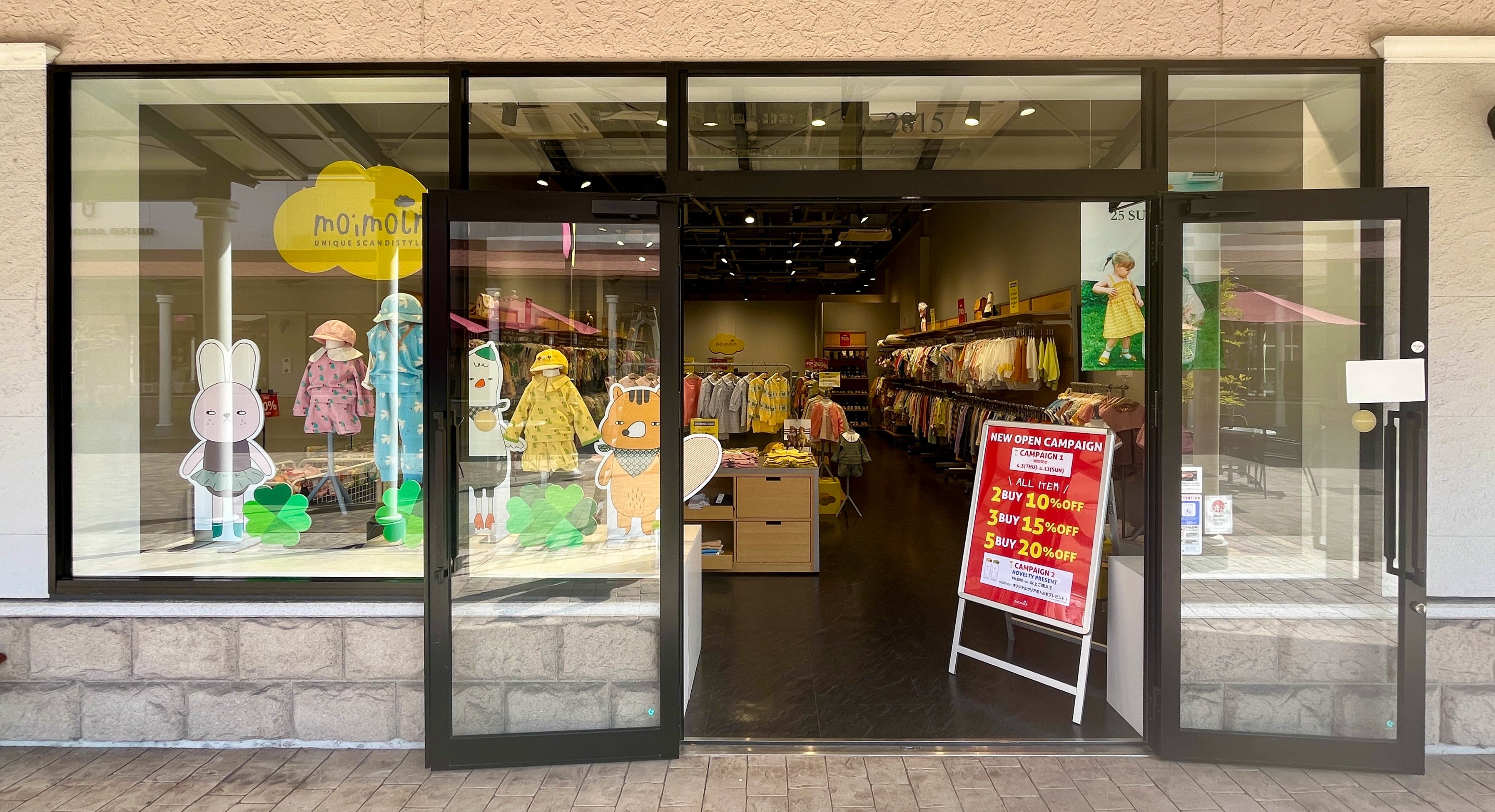 アウトレットでは2店舗目となる新店舗は、駐車場からのアクセスも良く、売り場面積約91㎡の店内でモイモルンの世界観をお楽しみいただけます。オープニングキャンペーンとして店舗限定のまとめ買いイベントやモイモルンオリジナルの限定ノベルティもご用意。どちらも期間限定の開催となりますので、お早めにご来店ください。