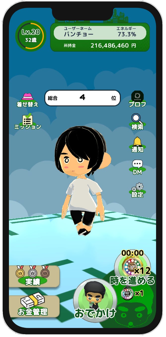 すべてのプレイヤーは最初、東京都内のブラック企業に勤務する冴えない会社員としてゲームをスタート。しかし、投資の天才「バンチョーくん」から500万円と転職先を提供され、人生が動き始めます。
