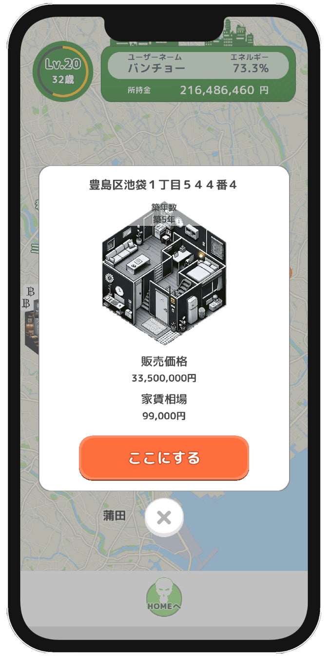 『メタバンチョー』は、25歳のプレイヤーが東京23区を舞台に不動産投資を駆使して資産形成を行い、最終的にどれだけ多くの資産を築けたかを競う“人生型”不動産投資ゲームです。