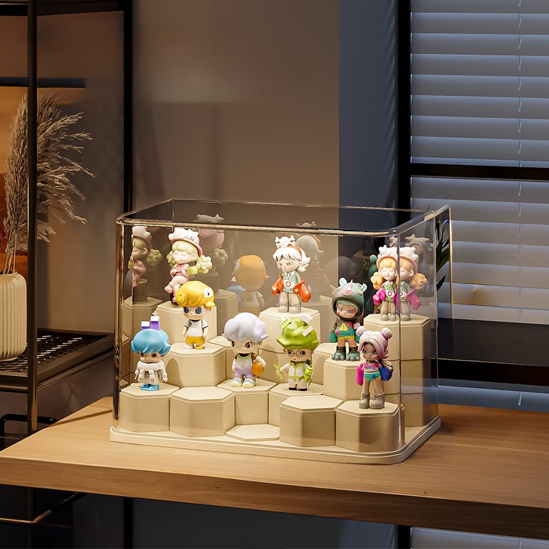 ブロック付き、段差が1~7段まであるケースなど、ひな壇付きのケースでフィギュアを立体的に展示できます
