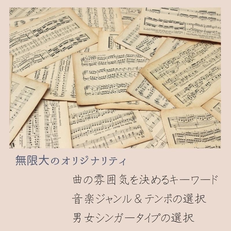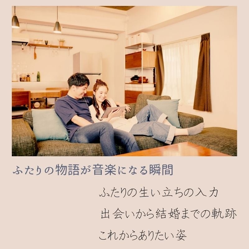 ・完全オリジナル楽曲:カップルの生い立ち、出会い、未来への想い、表現したい音楽の雰囲気をヒアリングフォームで収集し、オリジナル楽曲として表現。