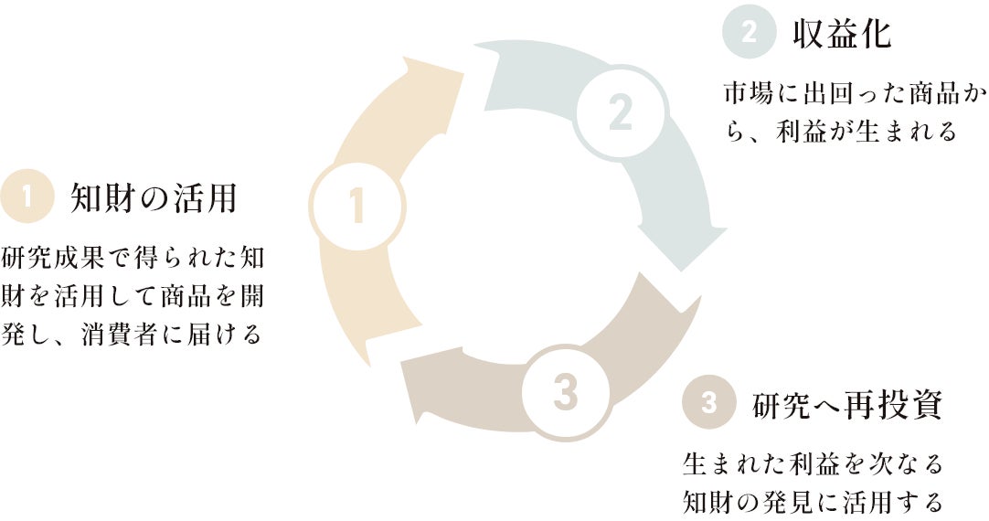 HAKKOU JAPANは、知財の活用から収益化、そして研究への再投資というサイクルを構築し、持続的な成長を目指します。