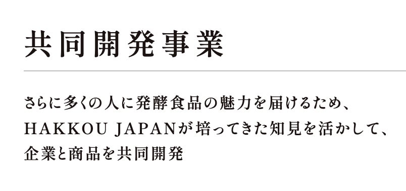 マーケットのニーズを汲み取った需要のある商品を共同開発し、地域の発酵食品の活性化を図りつつ、国内外への発信・グローバル展開を同時に実現します。