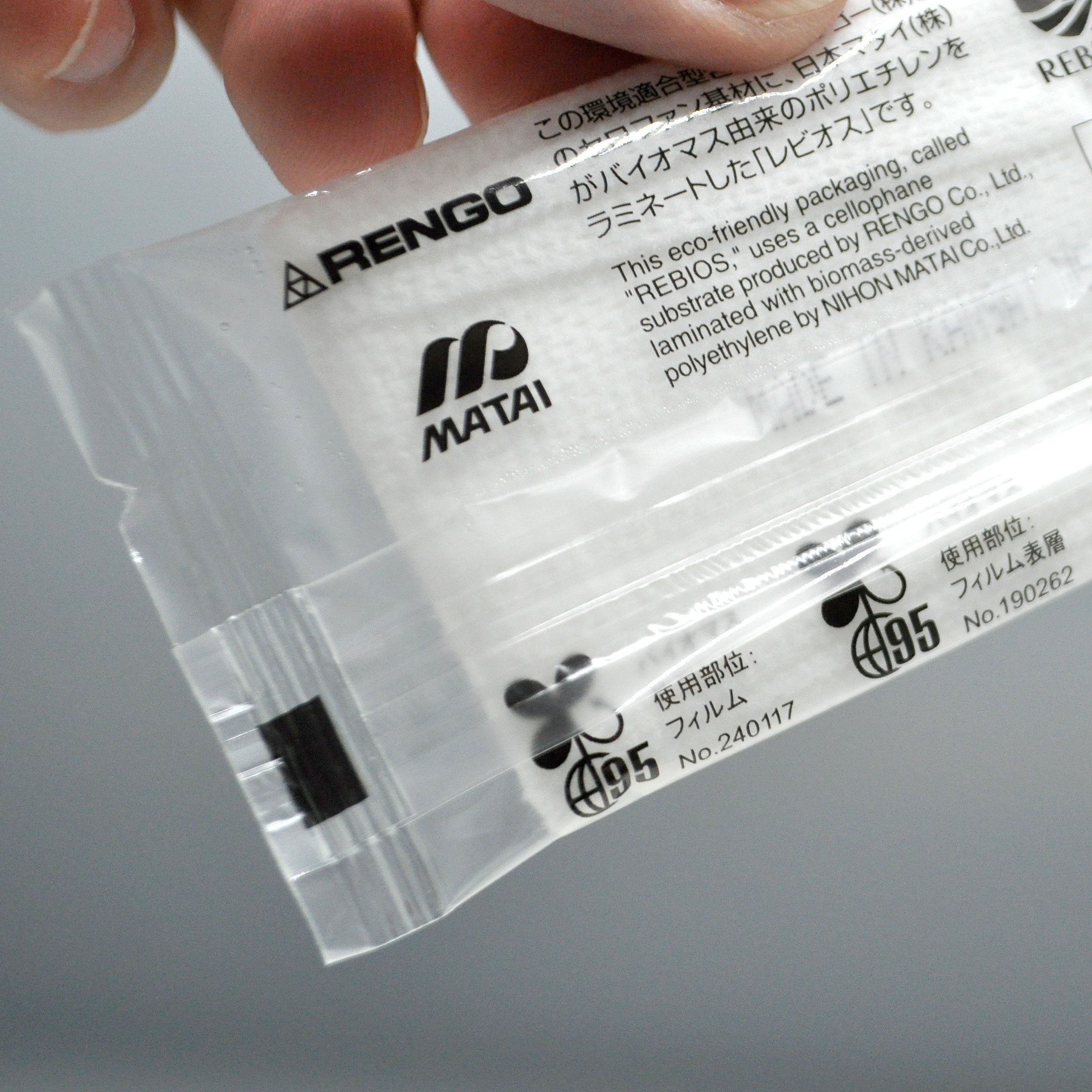 本フィルムは、親会社レンゴー株式会社が製造・販売するセロファンを基材に、当社独自のラミネート技術を駆使して開発しました。外装フィルムとして、一般社団法人日本有機資源協会のバイオマスマーク(No.240117)を取得しており、環境負荷の低減と機能性の両立を実現しています。