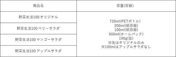この度、「野菜生活100 オリジナル」「野菜生活100 ベリーサラダ」「野菜生活100 マンゴーサラダ」「野菜生活100 アップルサラダ」の定番4アイテムをリニューアル。
