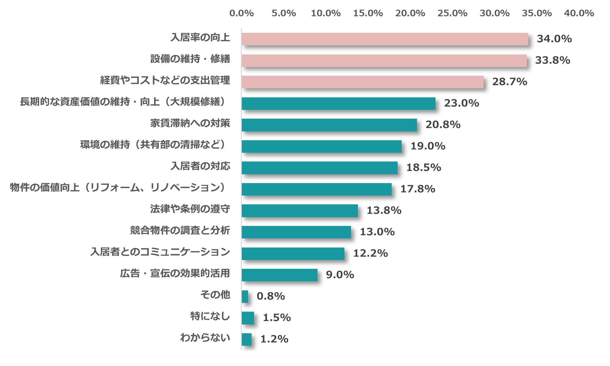 賃貸経営で最も重要視されるのは「入居率の向上(34.0%)」