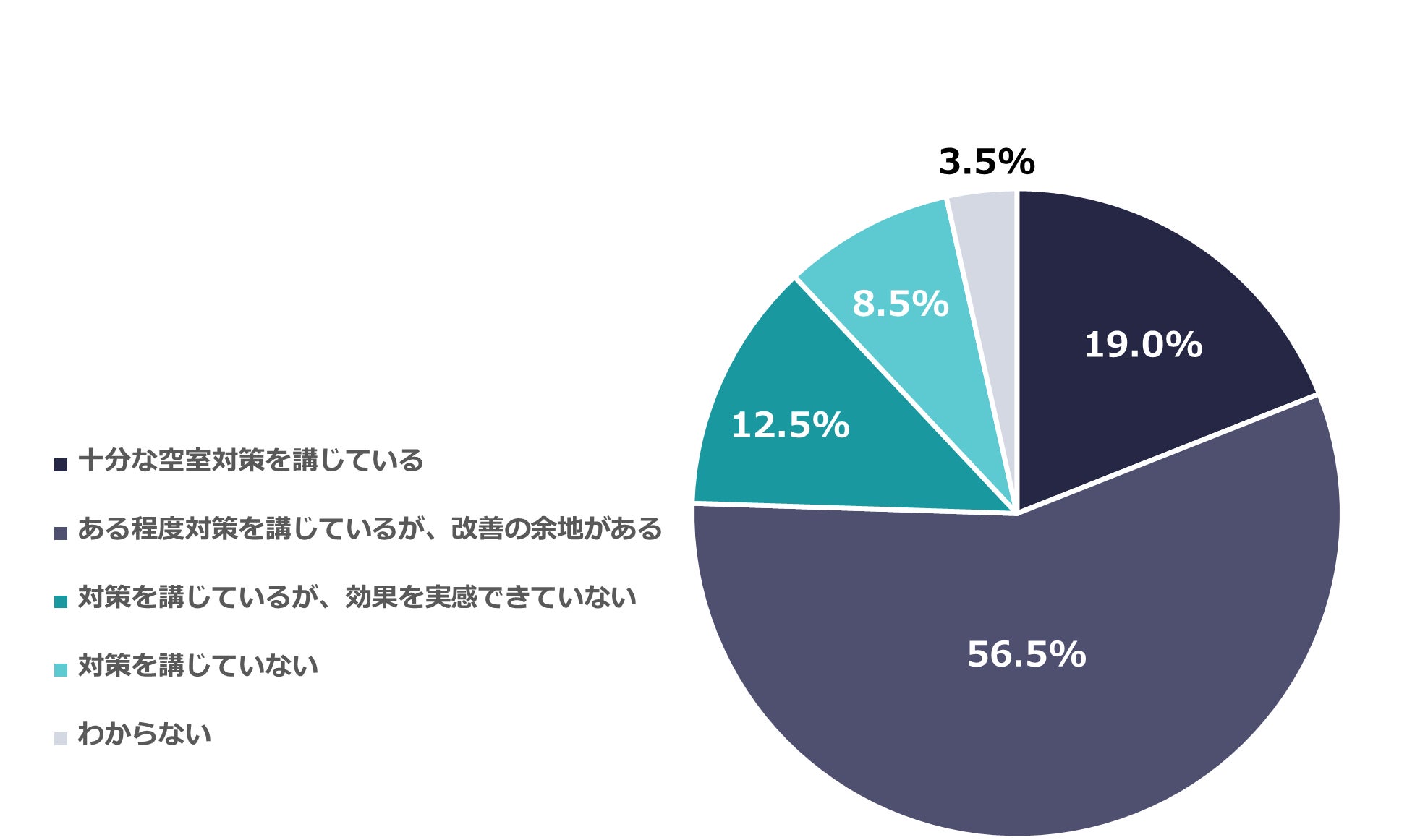 この結果から、全体の77.5%が空室対策に何らかの課題を感じていることが明らかとなりました。多くのオーナーが対策を講じているものの、十分な効果を実感できていない現状が浮き彫りとなっています。空室対策の強化が、今後の賃貸経営において重要なポイントとなることがうかがえます。