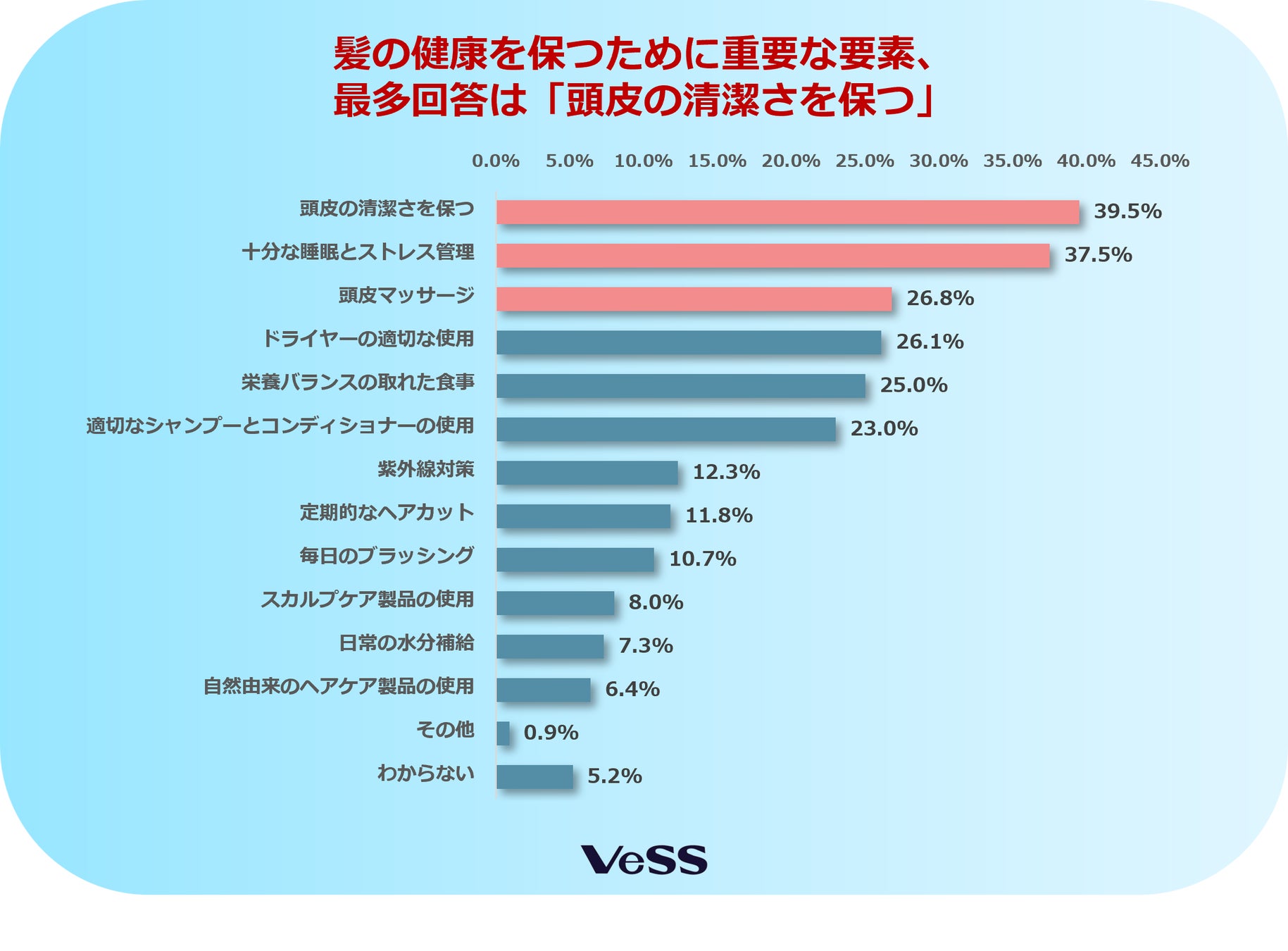・髪の健康を保つために重要な要素、最多回答は「頭皮の清潔さを保つ」