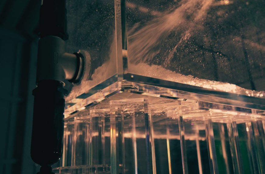 一般的な水槽の2〜3倍にも及ぶ厚さのアクリル板を使用。圧倒的な透明感と構造美、そして高い耐久性を実現しました。