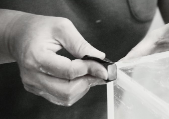 すべての面に丁寧な手磨きを施し、アクリルの透明度を最大限引き出すことで、水槽全体が光の彫刻のように輝きます。