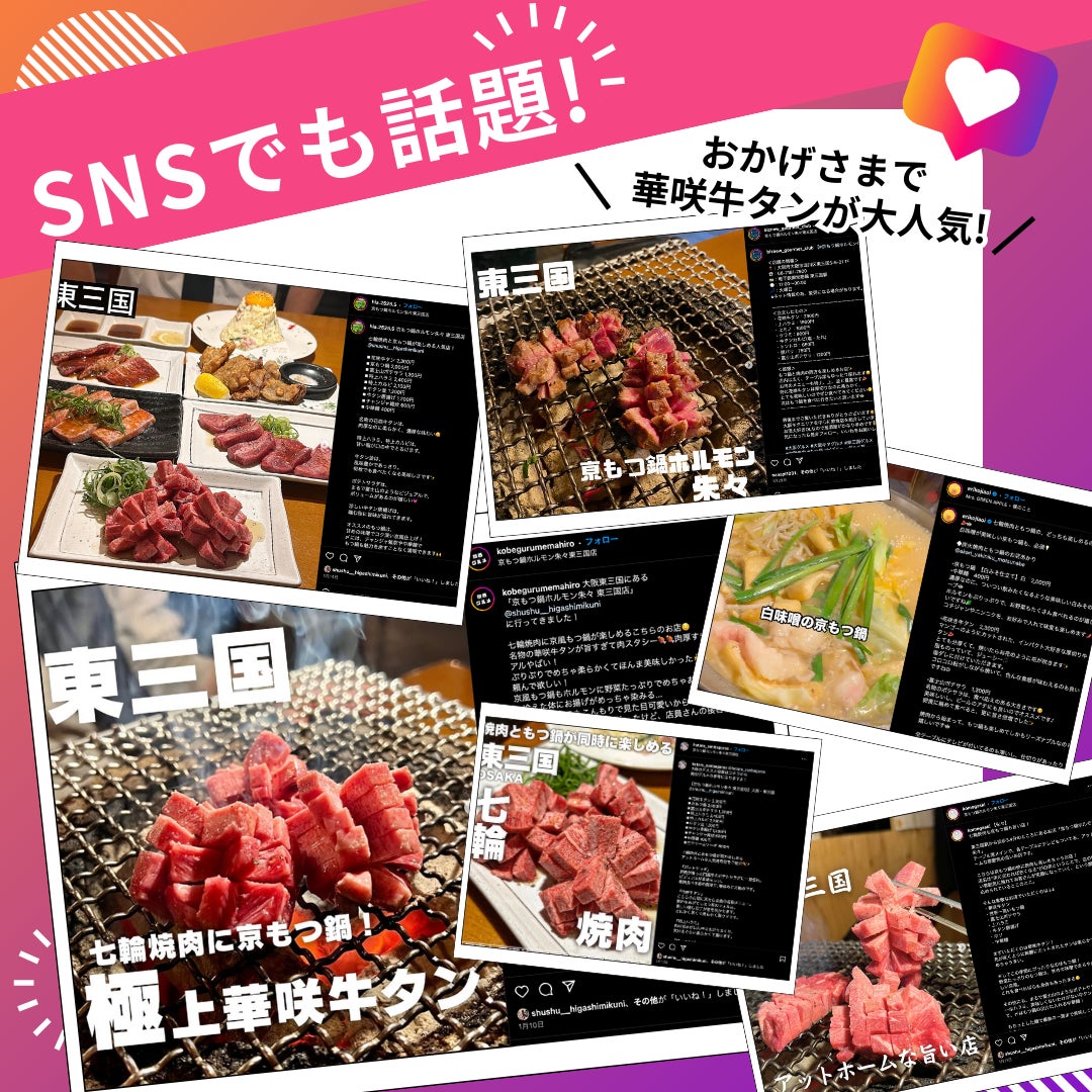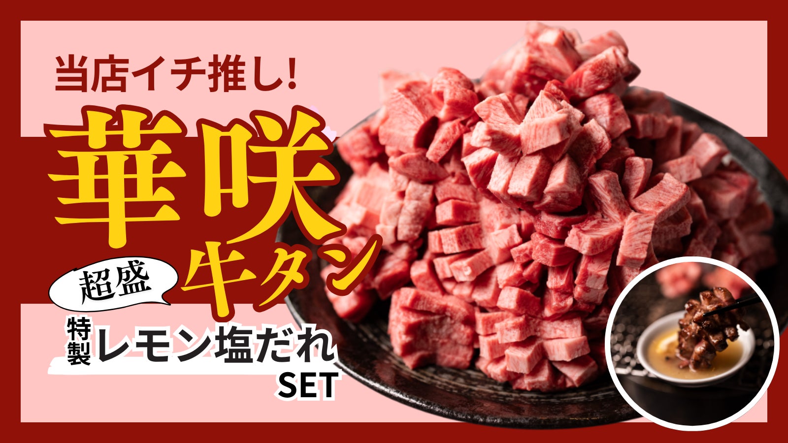 TV番組でも紹介され、見た目のインパクトとジューシーさが特徴の「華咲牛タン」は大人気メニューです。