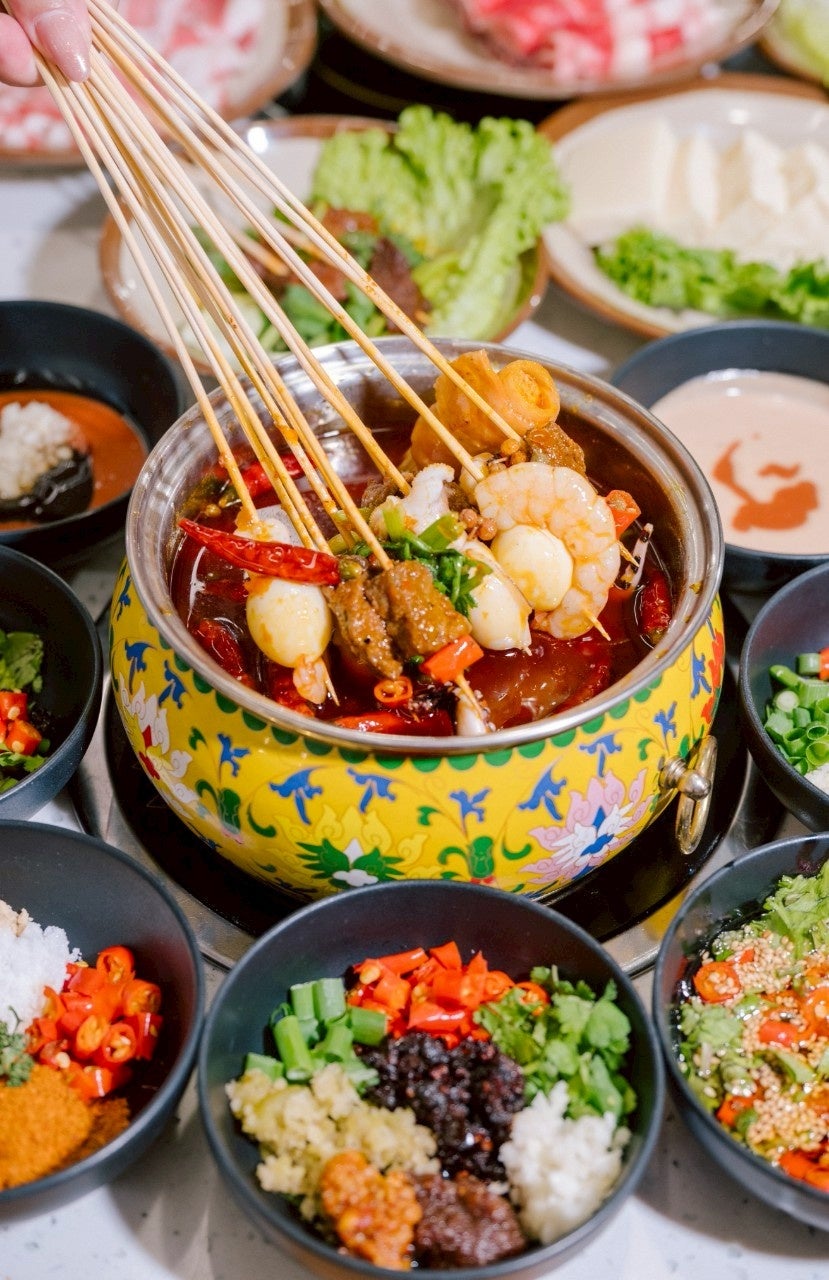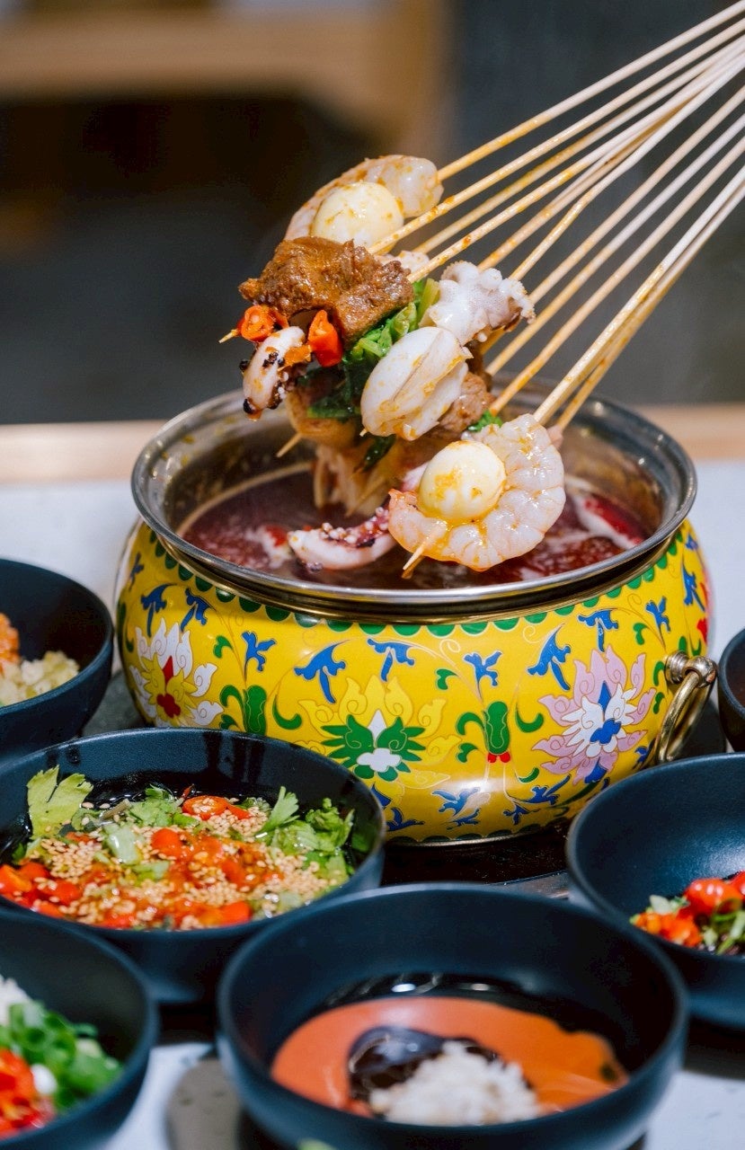 中国・四川省発祥の鍋料理で、数十種類の肉や野菜などの具材を串に刺し、スパイスを効かせたスープで煮込んで食べる、近年日本でも注目を集めています。