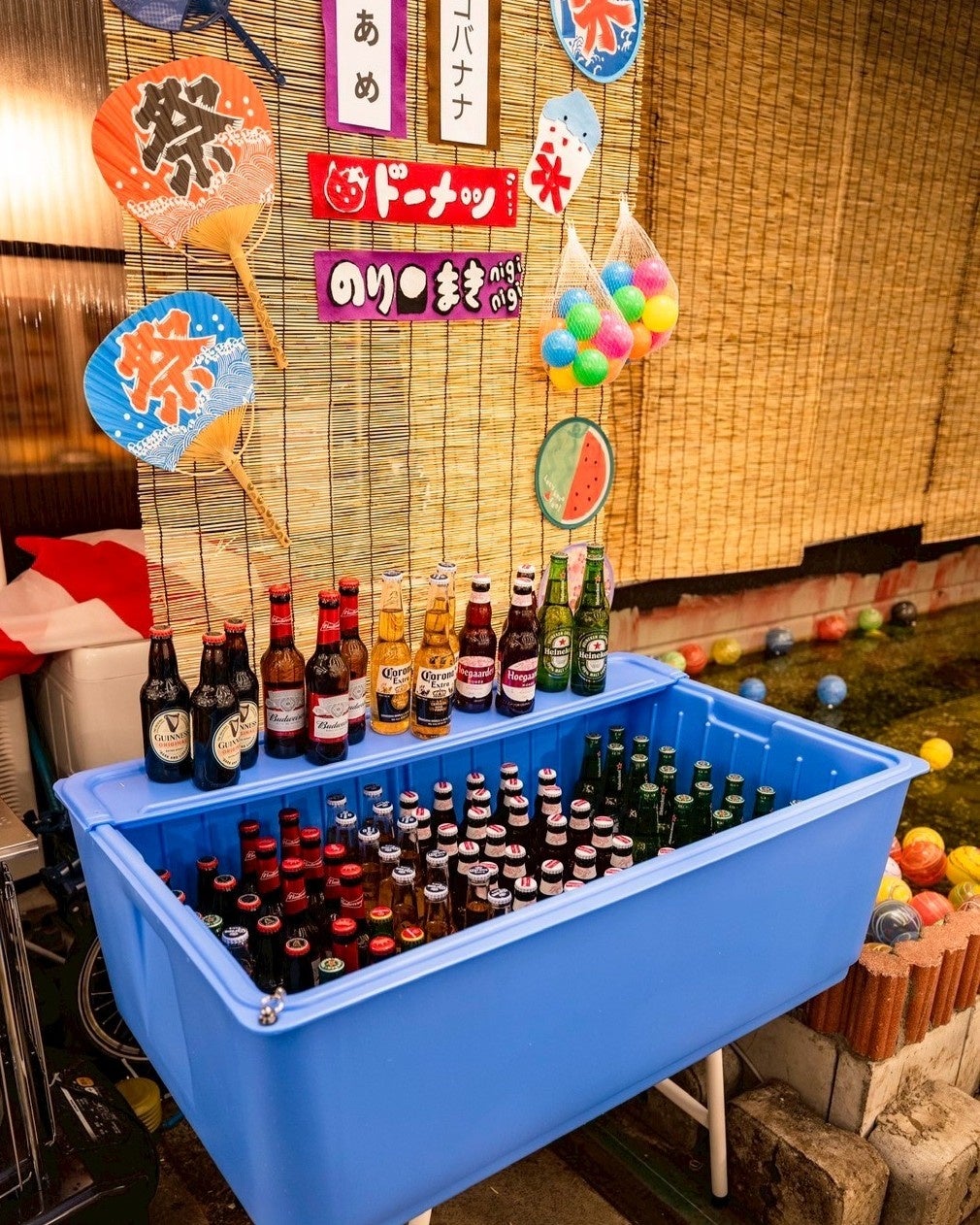 ヨーヨー釣りや冷やしビールなど、子供から大人まで楽しめる懐かしい屋台ゲームをご用意。食事だけでなく、体験を通して記憶に残る時間を提供します。
