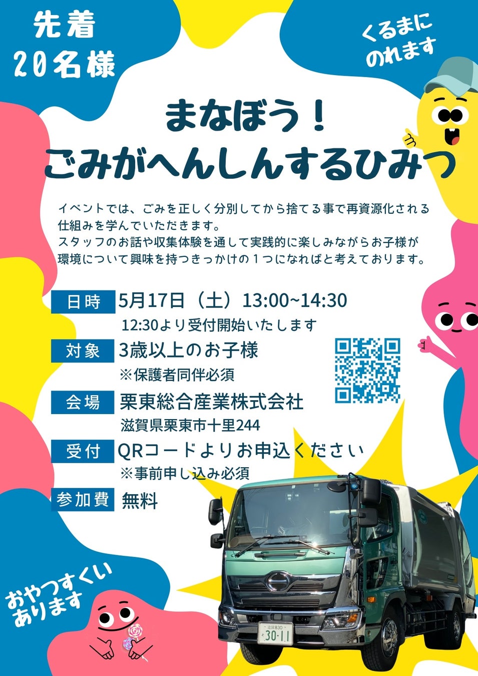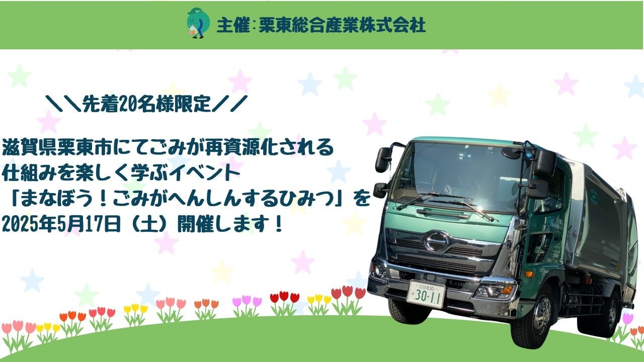 滋賀県栗東市で昭和37年(1988年)から栗東市のごみ収集委託業者として今日まで市民の皆様の生活環境を守り、環境事業の推進や廃棄物処理、水回りのメンテナンスを中心に取り組む栗東総合産業株式会社(代表取締役:井之口二三雄)は、2025年5月17日(土)栗東総合産業株式会社敷地内にて、ごみを正しく分別してから捨てる事により再資源化されるしくみを楽しく学べるイベント「まなぼう!ごみがへんしんするひみつ」を開催します。