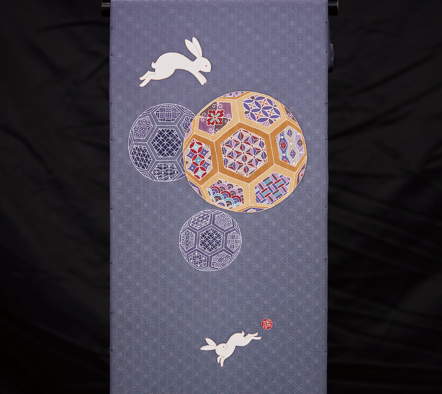 糸目糊置き友禅の技法を基本に、現代のモチーフと伝統模様を組み合わせたデザインが特徴です。 師匠からの言葉「気の入った仕事」をモットーに、もように願いを込めながら見る人・着る人が楽しくなるような作品づくりを心がけています。