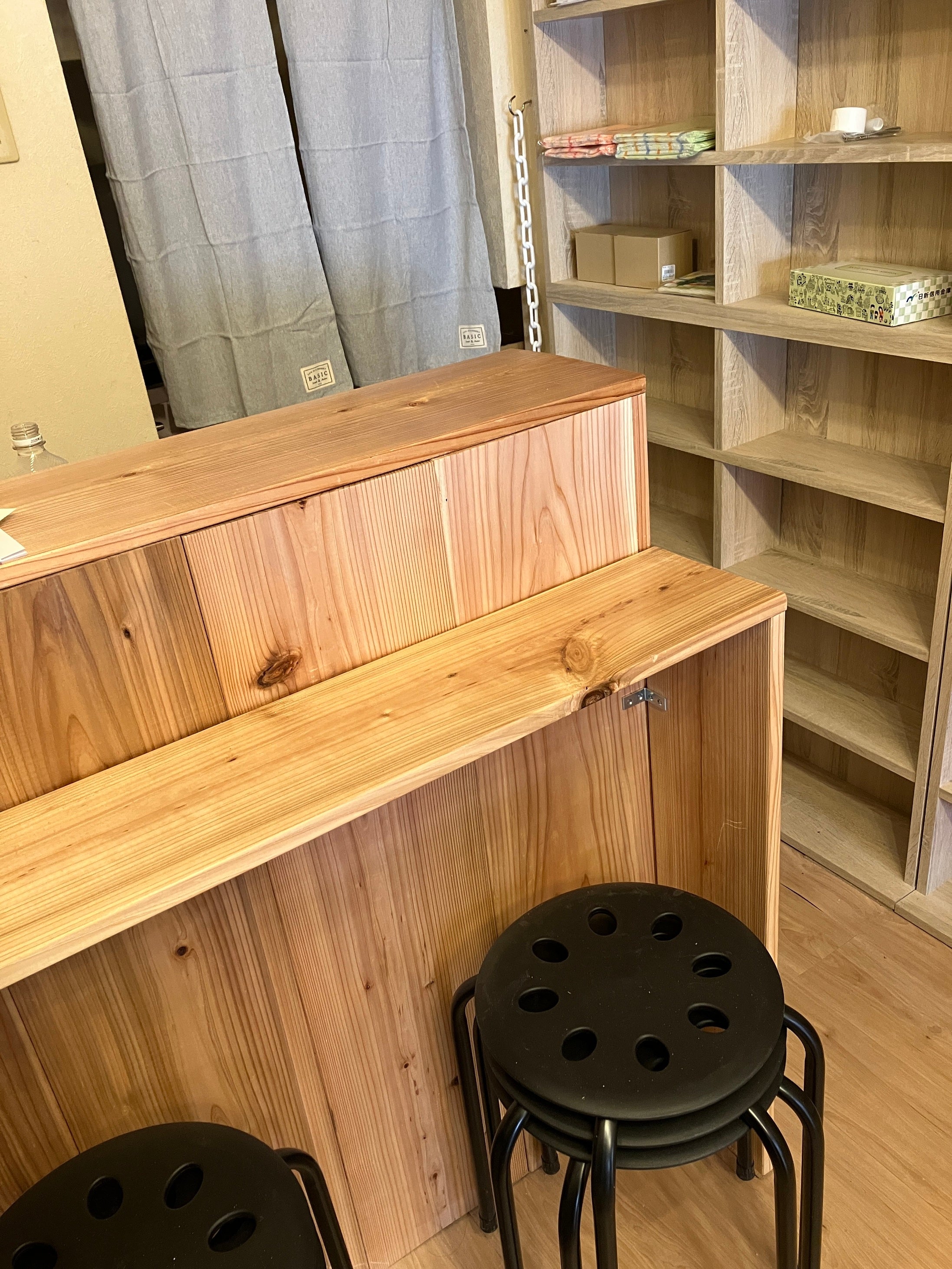 ■小さなバーカウンターがあり、お酒やコーヒーなどを用意してお待ちしております。旅に出たくなる外国のビール、あります。