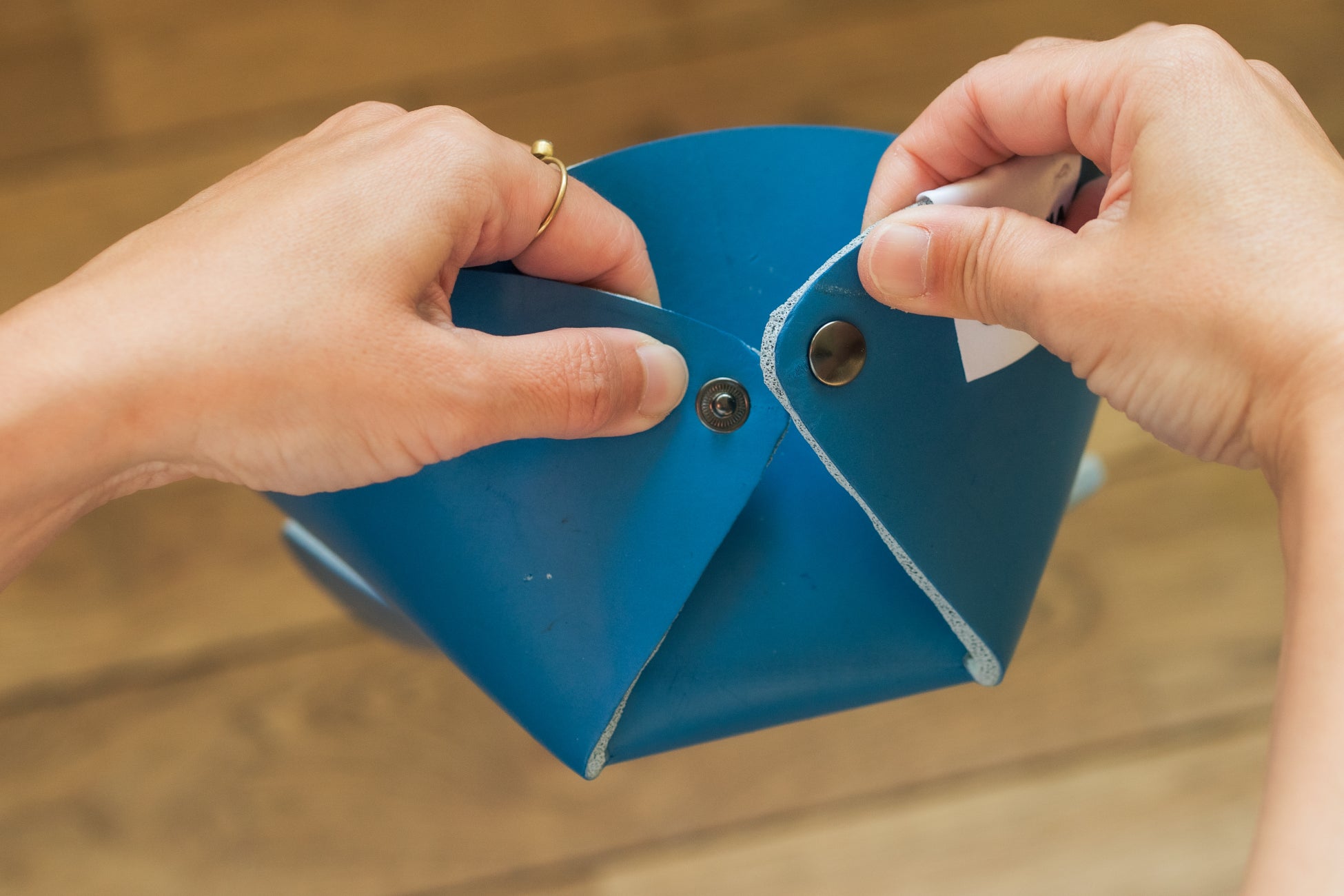 シンプルで機能的な形状:円形のヨガマットをホックで止めるだけのシンプルな作り。使わない時には広げて保管できるので、場所をとりません。