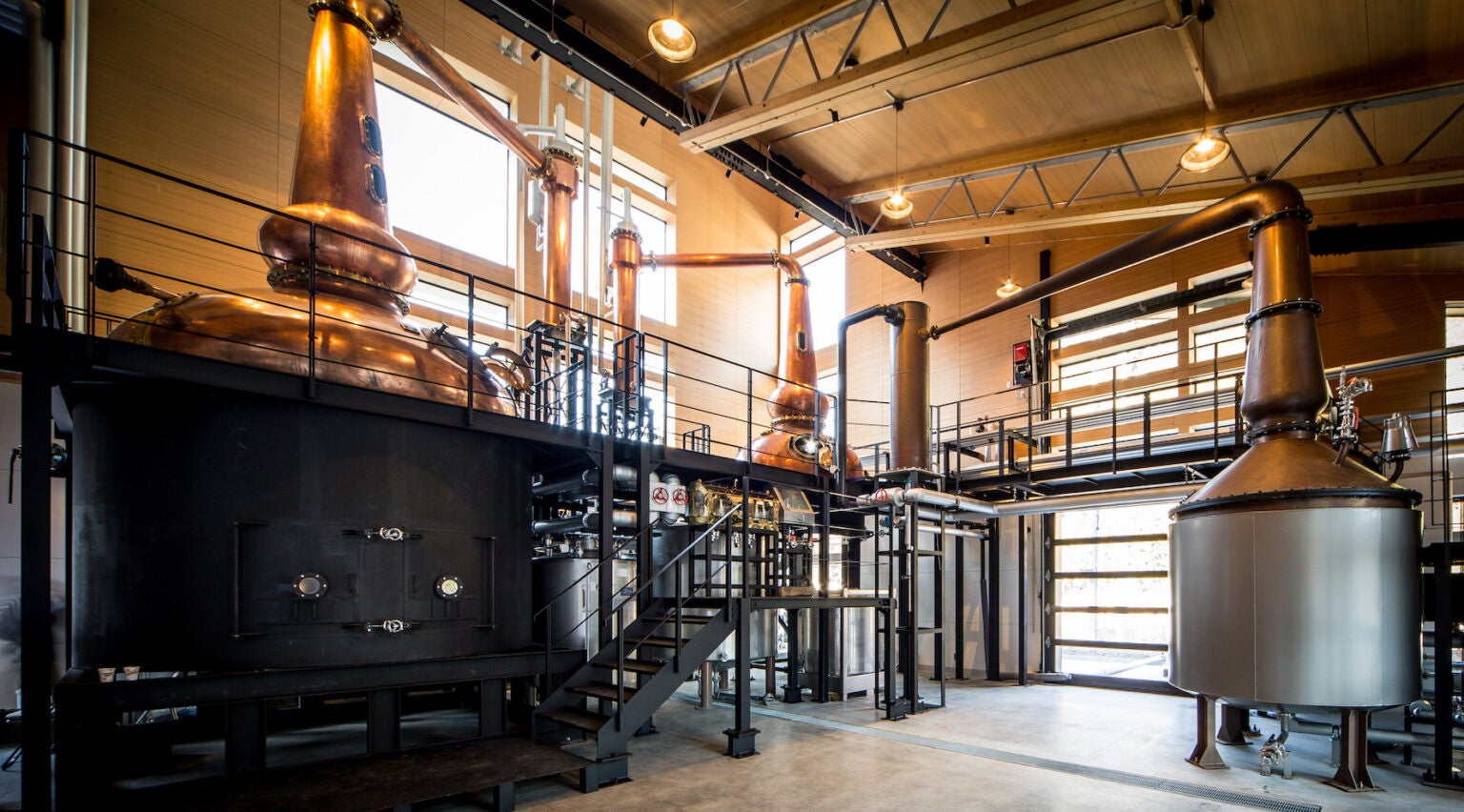 シングルモルトウイスキーは、単式蒸留機(ポットスティル)で2回蒸留するのが基本です。静岡蒸溜所では、WとKという2つの蒸留機で、初留(1回目の蒸留)を行なっています。