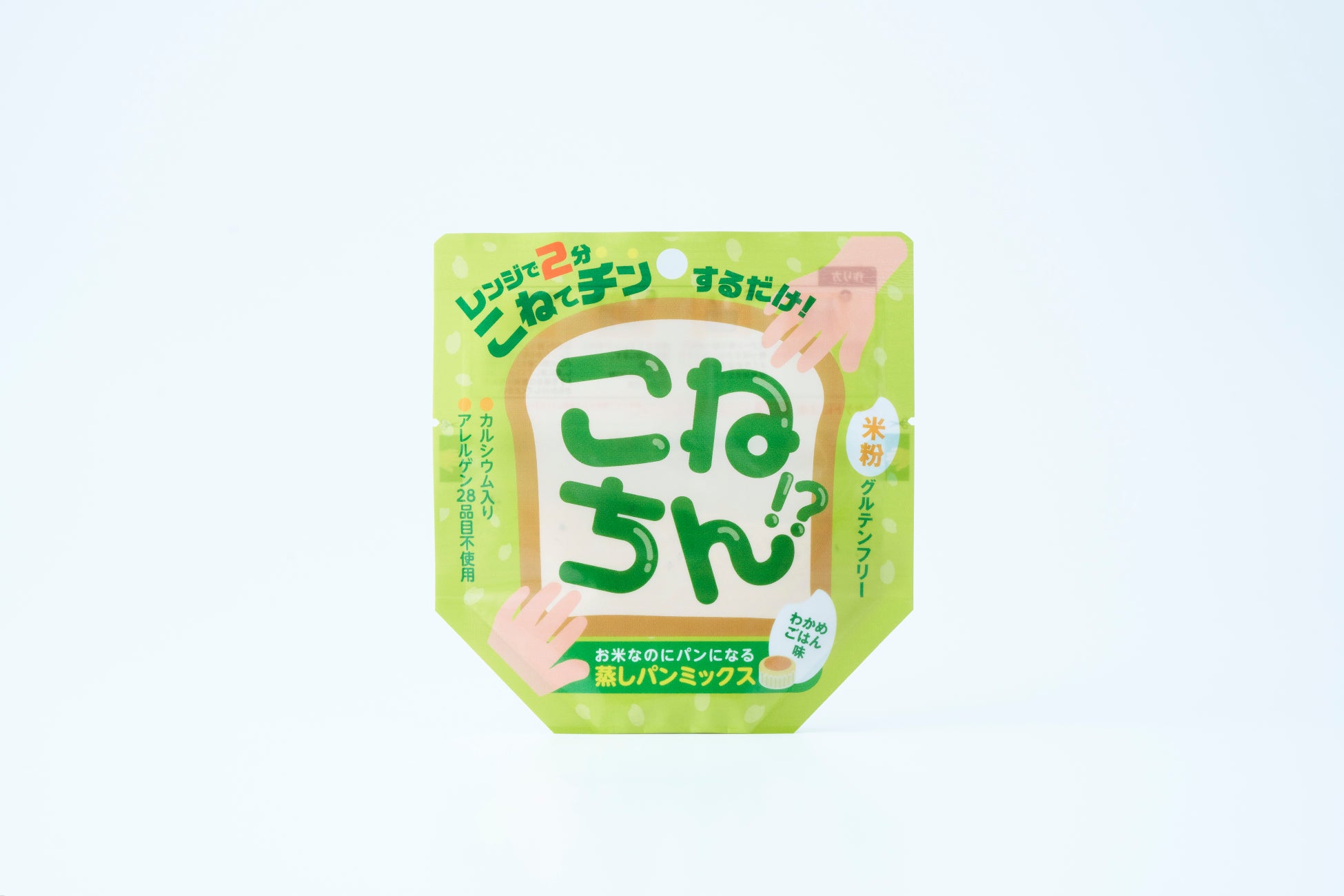 こねちんは、お米以外の穀物を持ち込まない「グルテンフリー」「アレルゲン28品目不使用」の工場で生まれた米粉でできる蒸しパンミックです。原料には岩手県産のうるち米を使用し、電子レンジで2分チンするとふわふわでモチモチの本物の蒸しパンが出来上がります。出来上がりは、ご飯を炊いたそのもので「白ごはん味」「わかめごはん味」とネーミングしました。また、お子様の成長を助けるカルシウム入りです。お子様がおやつに食べても安心・安全なお菓子としてお楽しみいただけます。