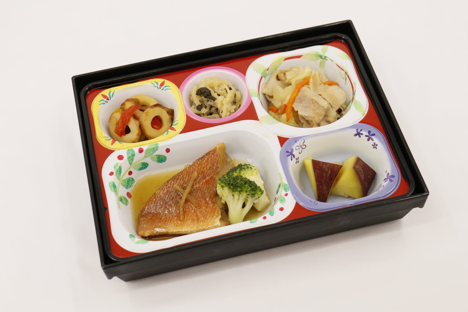 ・普通食:栄養バランスに配慮した家庭的な味わいのお弁当。