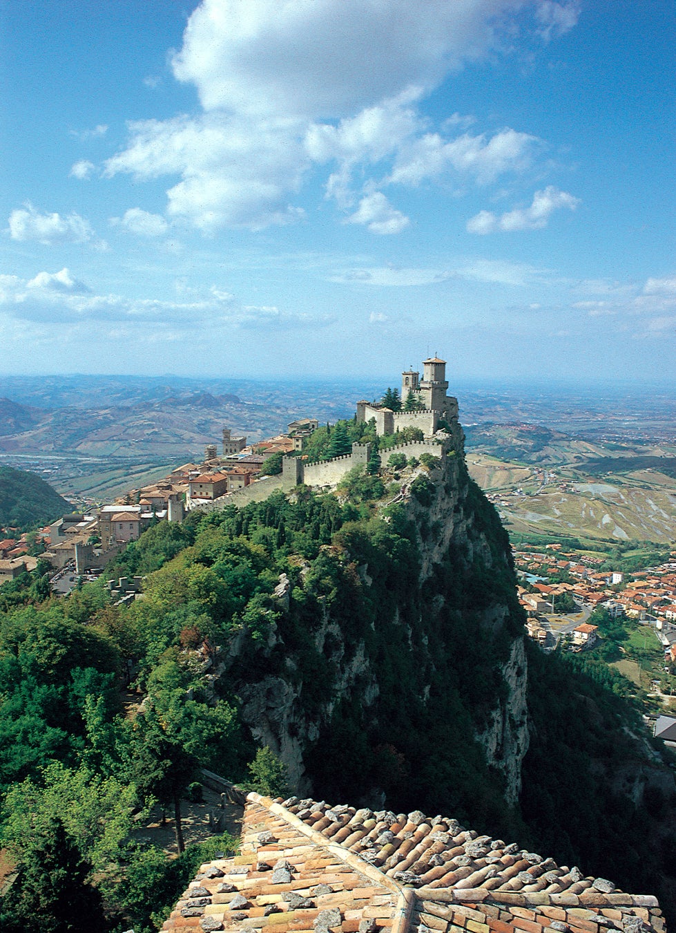 サンマリノ共和国は、イタリア中東部に位置する、世界最古の共和国です。301年、ローマ皇帝による迫害から逃れた石工マリーノが築いたキリスト教徒の共同体が起源とされ、以来、天然の要塞であるティターノ山の上に築かれた城塞都市として独立を守り続けてきました。「自由」と「平和」を国是とし、1862年にはイタリアと友好条約を締結。中世の街並みが残る歴史地区とティターノ山は世界遺産に登録され、平和を象徴する国家として国際的にも高く評価されています。