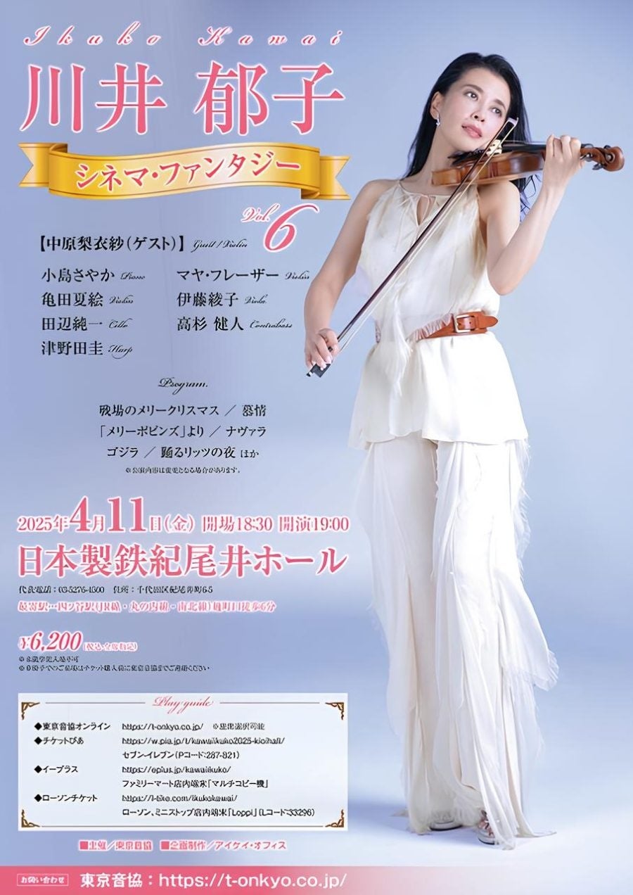 記者会見後、19 時より「川井郁子コンサート シネマ・ファンタジーvol.6」を開催いたします。