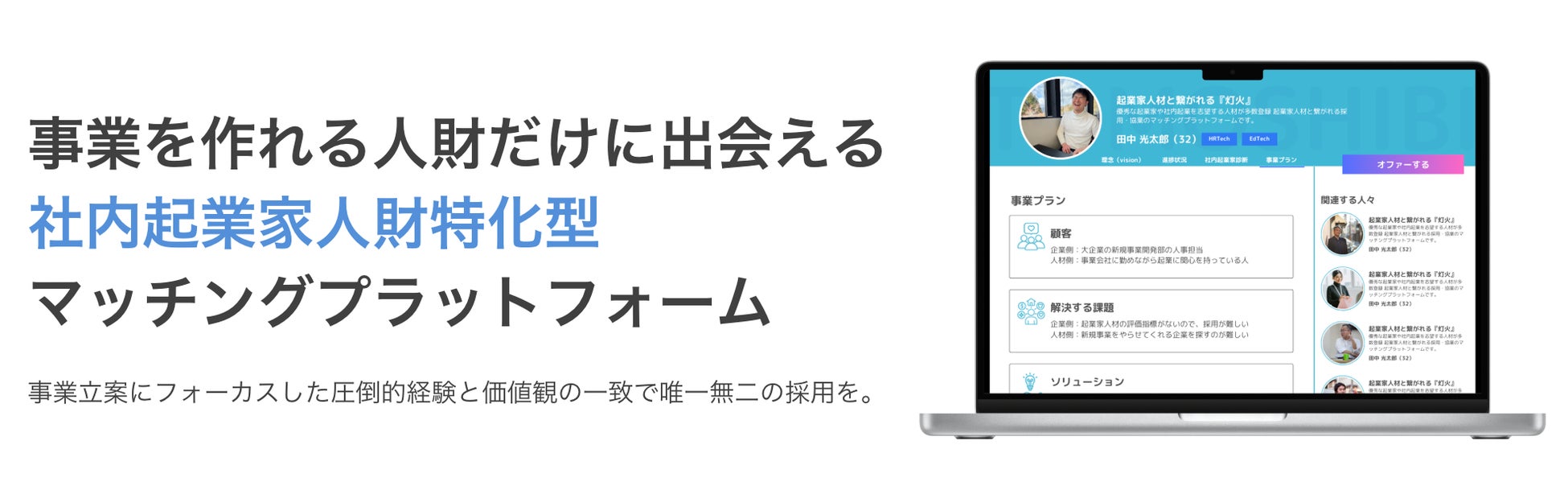 事業を作れる事業開発人財に特化をしており、事業立ち上げ経験だけではなく特性でのマッチ度を事前に判断して探せるサービスです。