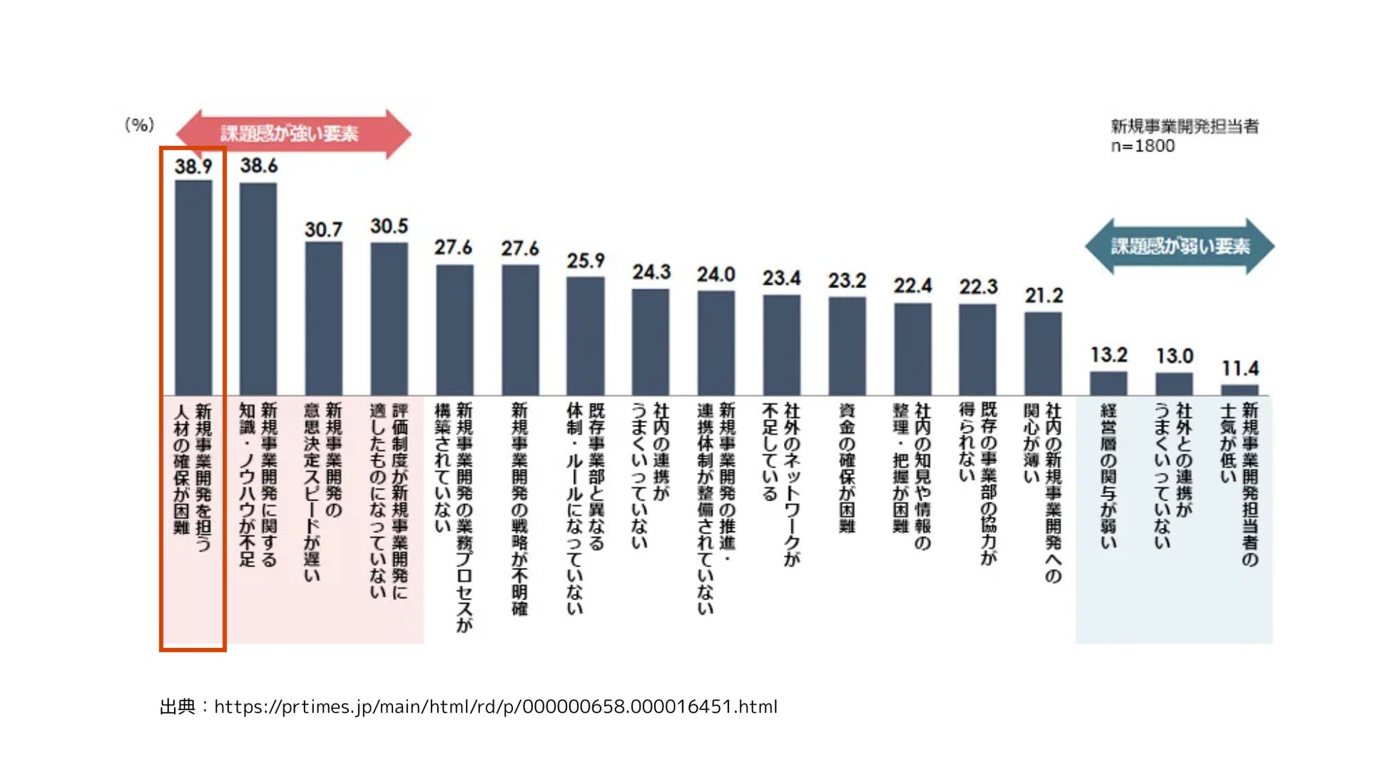 「社内に新規事業を立ち上げられる人財がいない」「採用経路が限られる」という課題が顕在化 |