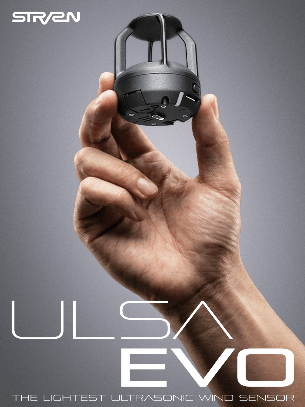 超音波式風向風速センサー(以下、超音波風速センサー)「ULSA EVO」は、直径50mm、全高57mmの超小型サイズを実現し、本体質量45g(ゴルフボールと同程度)の軽量設計により、同カテゴリにおいて世界最軽量の製品です。