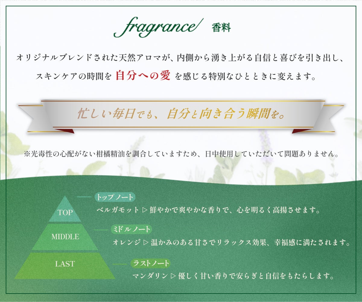 スキンケアタイムそのものが「自分を愛する」時間になるよう設計されています。