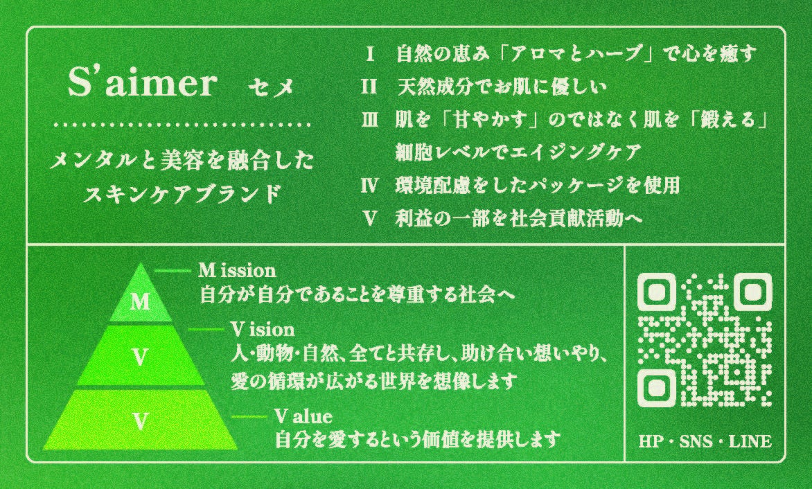 ブランド名「S’aimer(セメ)」は、フランス語で「自分を愛する」という意味。