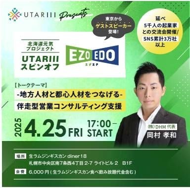 株式会社ダイレクトヒューマンマーケティング(本社:東京都渋谷区神宮前六丁目23番4号-2F、代表取締役:岡村 孝和、以下DHM)は、札幌を拠点とする経営者団体UTARII(ウタリー)と業務提携を締結し、代表取締役の岡村 孝和がUTARIIアンバサダーに就任したことをお知らせいたします。