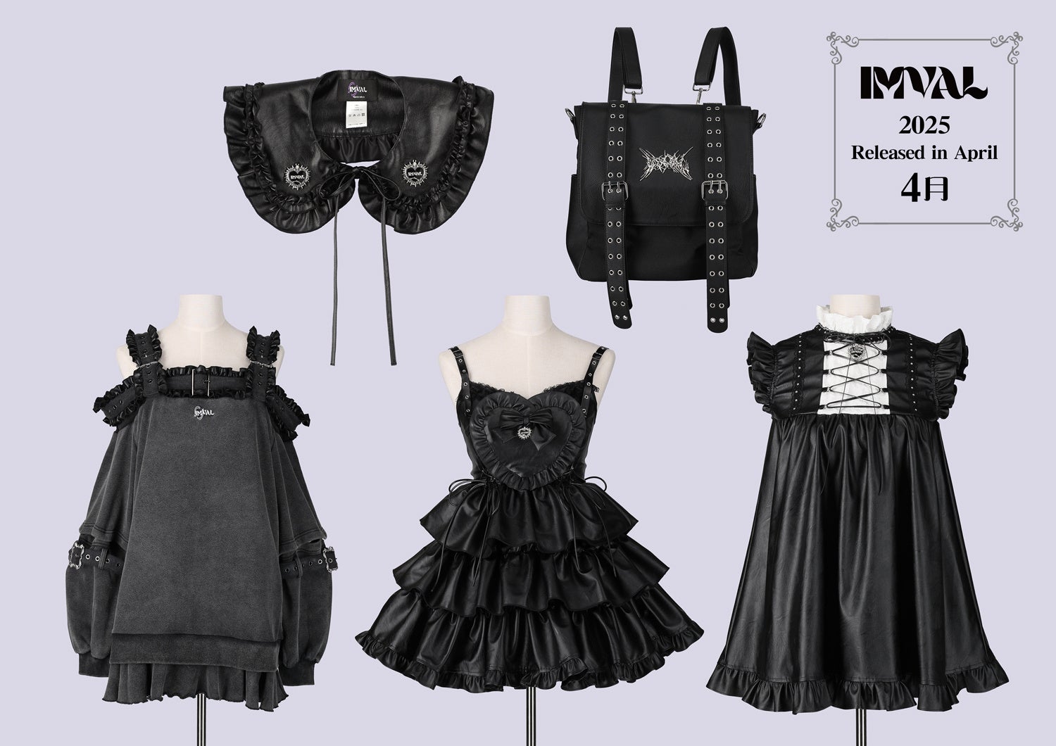 東京・ラフォーレ原宿を拠点に展開するゴシック&ヴィラン系ブランド「IMVAL(インヴァル)」は、2025年4月15日(月)に最新コレクションを公式オンラインストア「QOOZA(クーザ)」にて発売いたします。今回登場するのは、黒を極めた全5アイテム。ボリューミーなフリルとハートモチーフが印象的な主役級ワンピース「Frill Heart Dress」を筆頭に、挑発的なレザー使いとシルエット美を追求したドールチュニック、付け襟、オフショルダードレス、バックパックなど、着る者の内なる強さと美しさを引き出すラインナップとなっています。