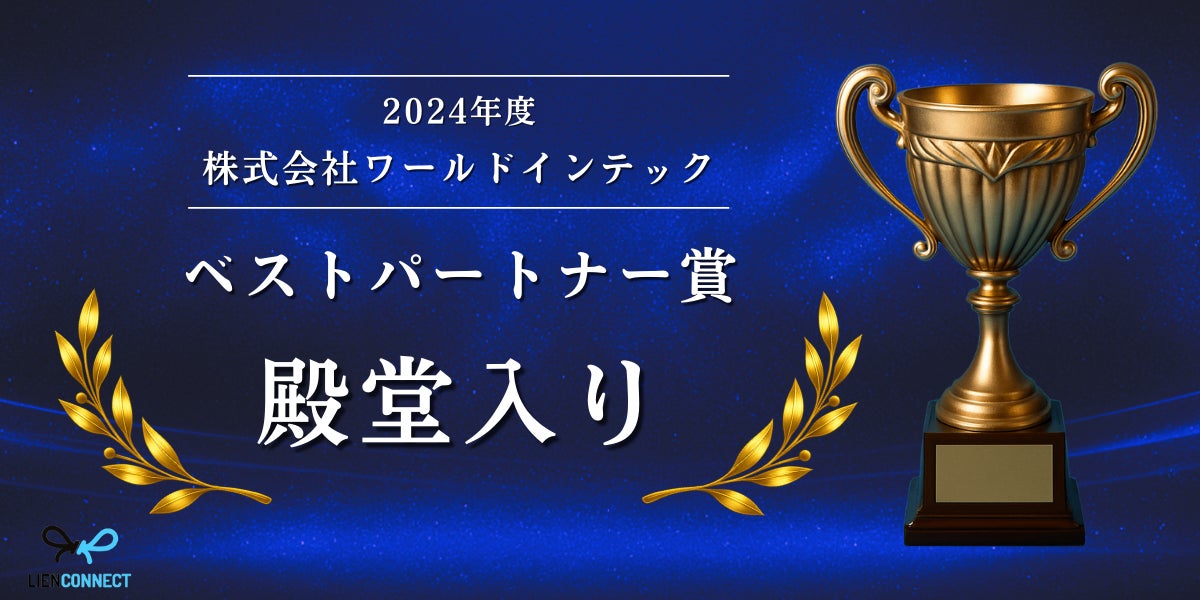 製造業特化の人材紹介サービスをしている株式会社リアンコネクト(本社:大阪府大阪市、代表取締役:飯田 和弘)は、株式会社ワールドインテック(本社:福岡県福岡市、代表取締役会長 :伊井田 栄吉)より、2024年度の採用活動に貢献したことを称えられ、ベストパートナー賞を受賞および殿堂入りを果たしたことをお知らせします。2021年から4年連続での受賞となります。