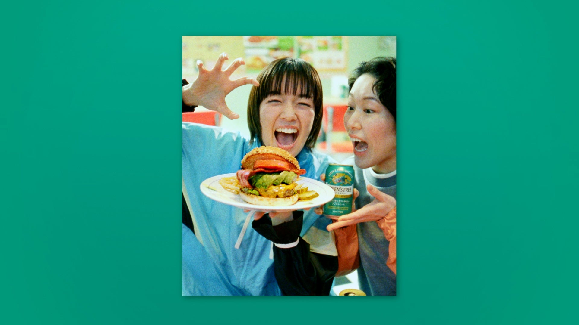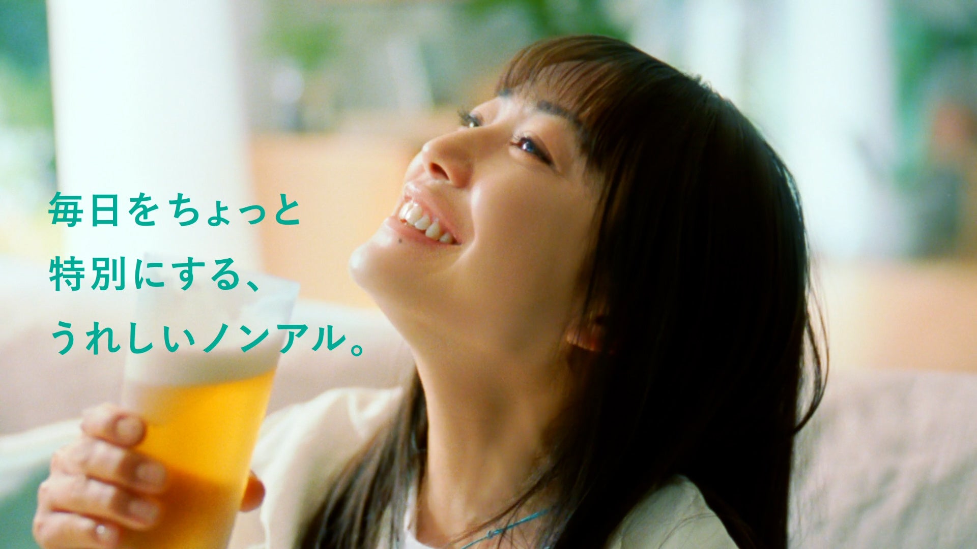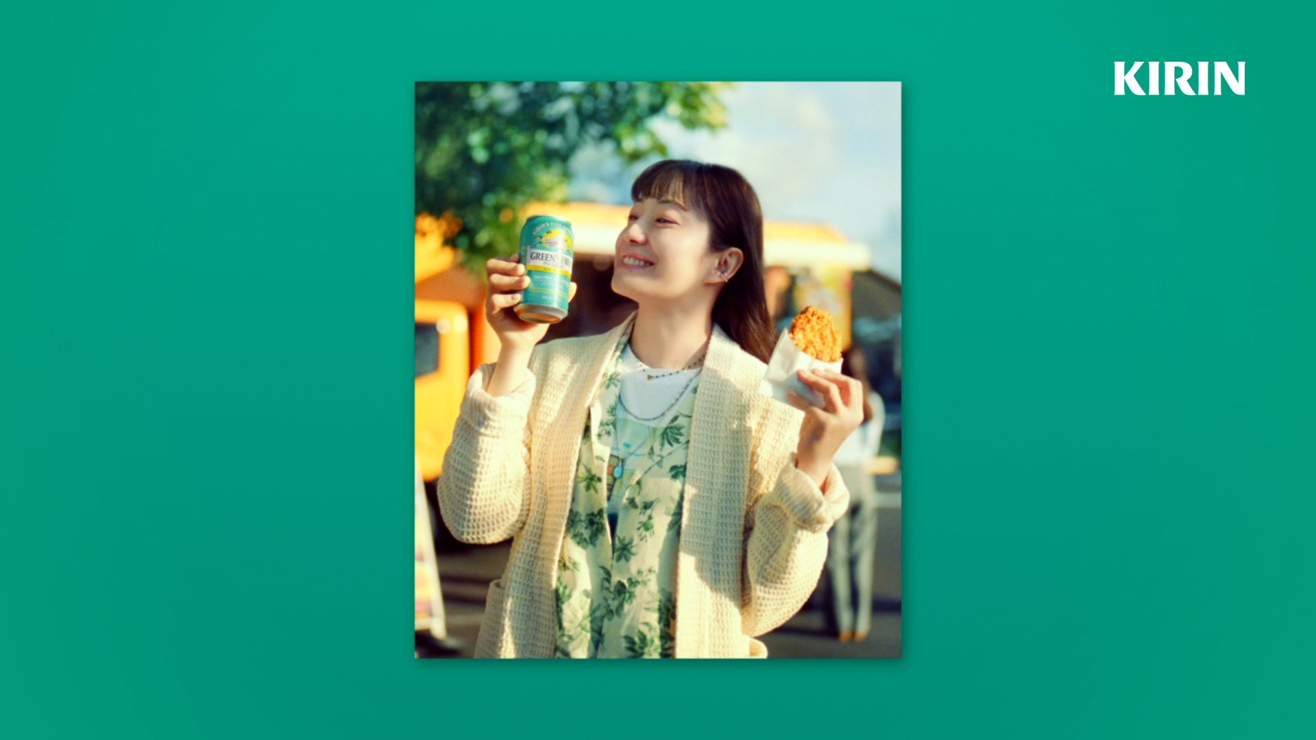 友人たちと温泉旅行中に浴衣姿で「グリーンズフリー」を楽しむ菅野さん。そこから、チキンを片手に味わっている場面やBBQを楽しむ姿、仲間とお好み焼きを焼きながら楽しむ様子も見られます。最後には「毎日をちょっと特別にする、うれしいノンアル。」というナレーションとともに自宅で「グリーンズフリー」を味わっている姿が映し出されます。それぞれの場面が思い出の1枚として写真に収められ、「グリーンズフリー」が日常に特別感を持たせることを伝えています。