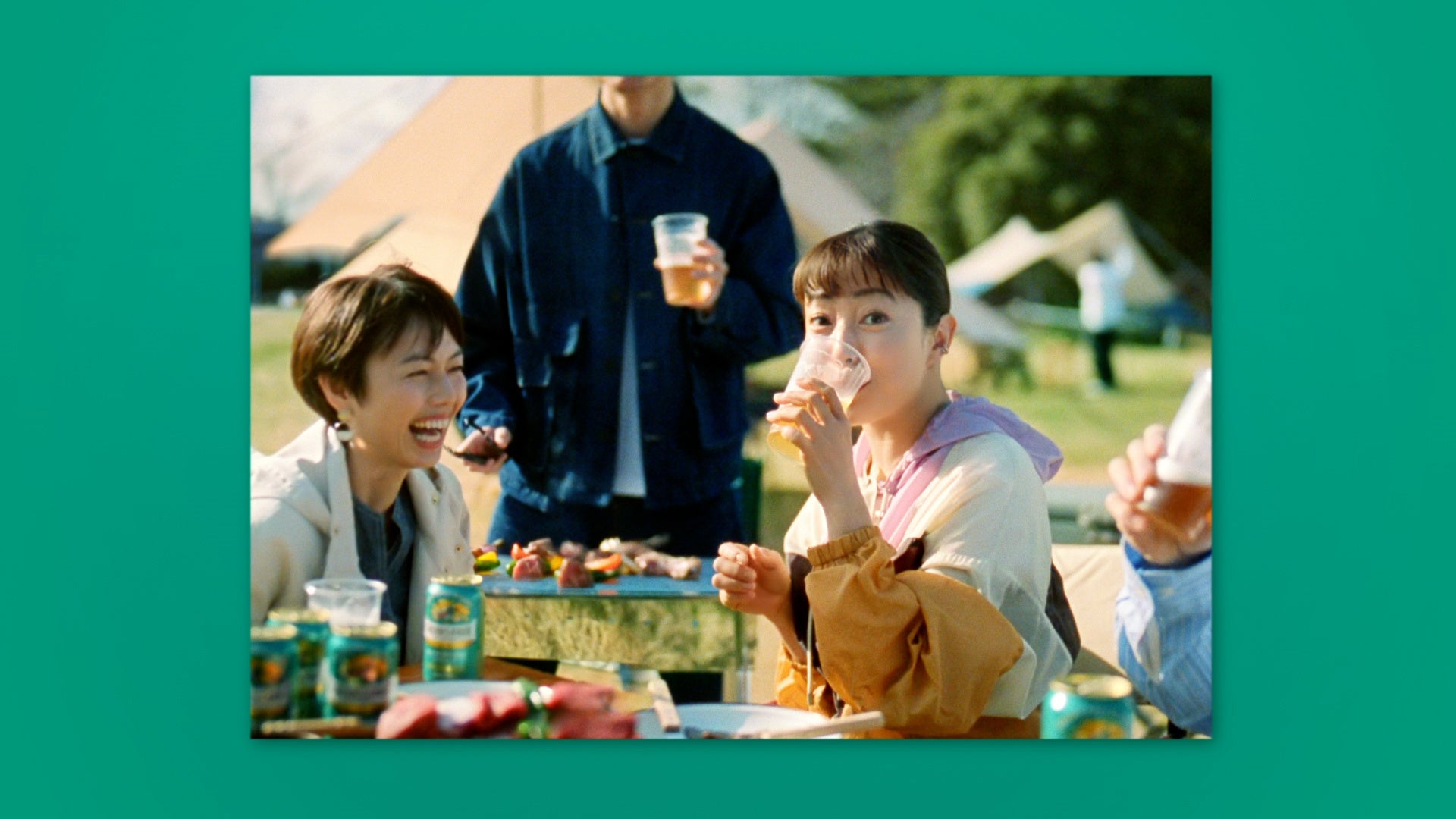 今回のTV-CMでは、菅野美穂さんと佐藤栞里さんがそれぞれのライフスタイルの中に「グリーンズフリー」を取り入れ、日常をより楽しんでいる様子を描写。菅野さんは友人との温泉旅行やBBQを、佐藤さんはフェスや友人との食事を心から楽しむ姿が描かれ、「毎日をちょっと特別にする、うれしいノンアル。」というメッセージを通して、「グリーンズフリー」は日常を特別で豊かにしてくれる商品であることを表現しています。