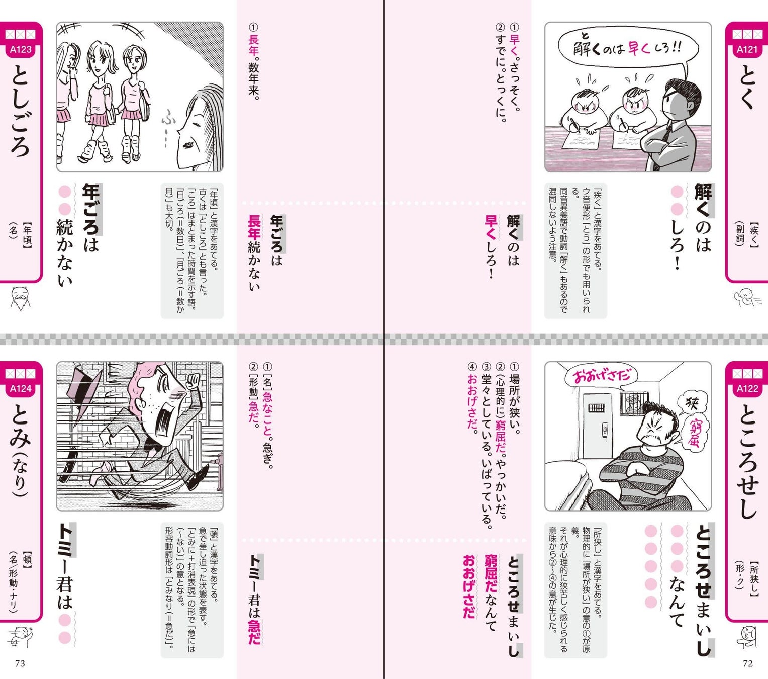 これまで25年以上も高校生・受験生に支持されている理由は、その「覚えやすさ」。単語の意味がスッと頭に入る「ゴロ合わせ」と、イメージ連動で記憶に残りやすい「イラスト」の力で、素早く楽しく、そして効率よく古文単語を覚えることができます。