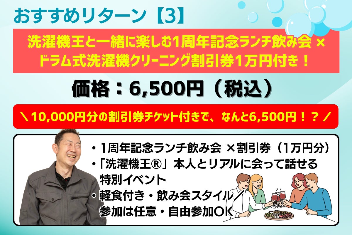 3.【洗濯機王®に会える】ランチ飲み会参加券+クリーニング割引券1万円分
