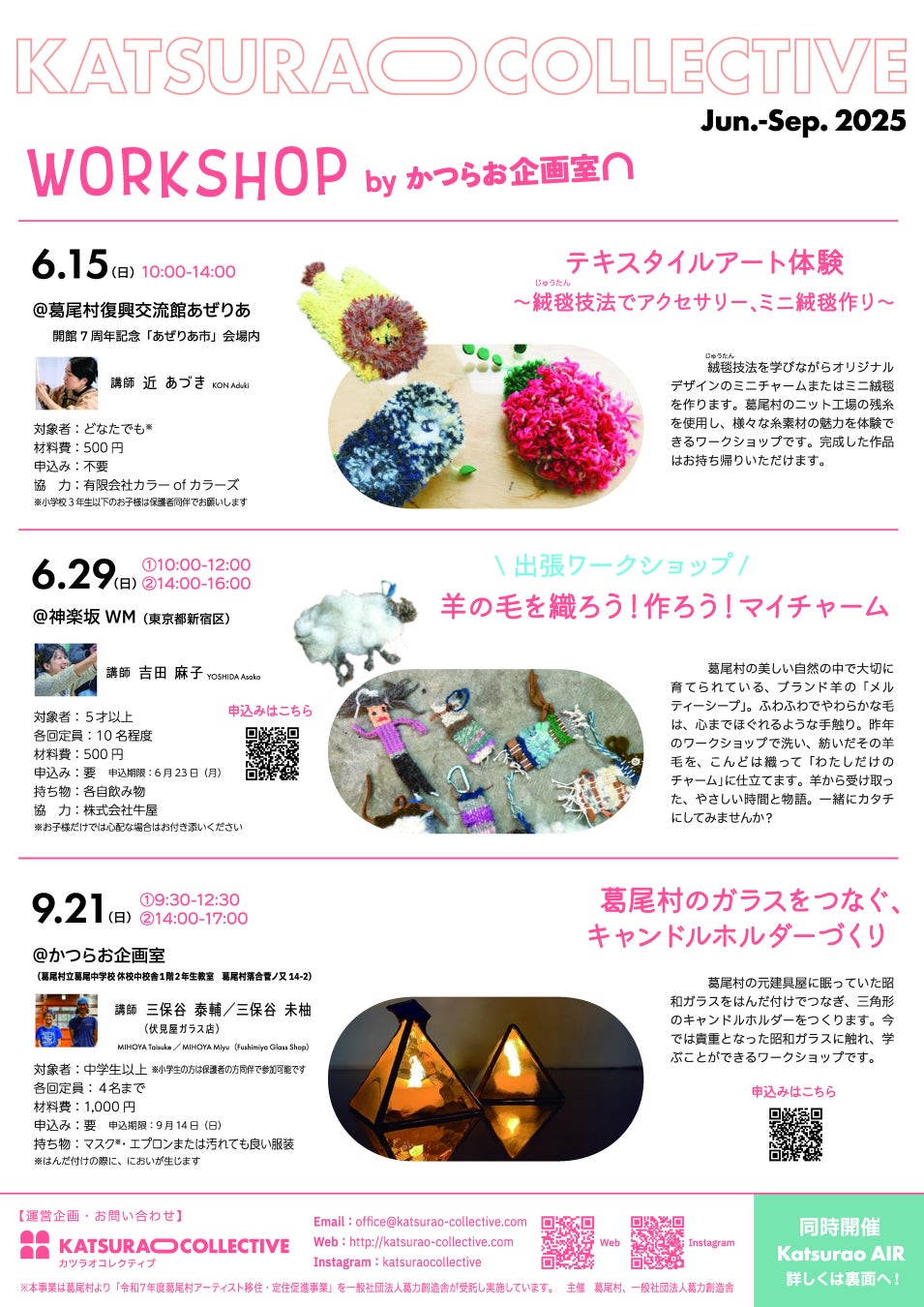 これらのワークショップは、ものによって申込が必要な場合もございます。Katsurao Collective 公式サイトで申込情報や持参物などをお確かめのうえ、葛尾村で、首都圏で、地域の魅力的な素材に触れる充実した時間をお過ごしください。
