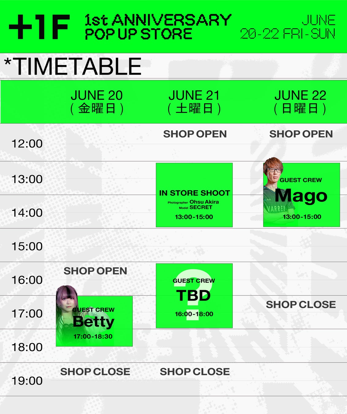 ゲストクルーとして+1FブランドパートナーのG-STAR.PRO所属ストリーマー「べてぃ」さんやVARREL所属のプロゲーマー「マゴ」選手の来店が決定。さらにフォトグラファー・大須晶氏による公開LOOK撮影も実施いたします。最新情報は+1F公式Xより発信されますのでご注目ください。