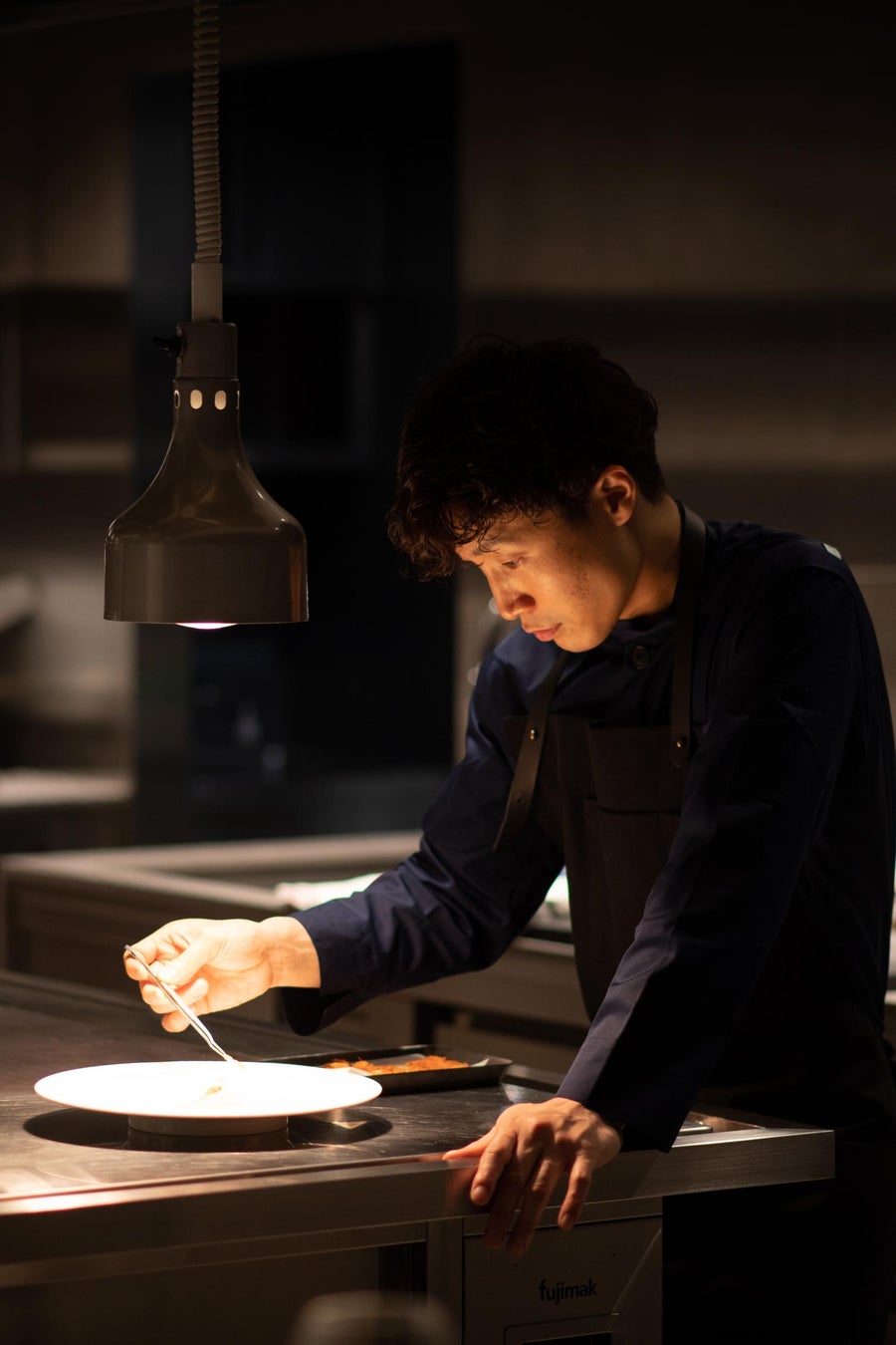 地元福岡の調理師学校を卒業後、都内フレンチレストランを経て2012年に渡仏。佐藤伸一氏(現Restaurant Blanc Paris)の薫陶を受け研鑽を積む。以後、世界各国のシェフやアーティストとのコラボレーションやカリナリーイベントのオーガナイズを務めるなど、多彩な活動を続けている。フリーの料理人として各地で活動する傍ら、日本橋馬喰町「nôl(ノル)」のディレクターを務め、2022年から4年連続のミシュラン一つ星、さらに2024年、2025年とミシュラングリーンスターへと導いている。日本最大級の若手料理人コンペディションRED U-35 において大会史上初となる三度の準グランプリを受賞。新たな美味しさの創出をテーマに食 × 医療、アート、Techなど垣根を越えた活動に取り組む。