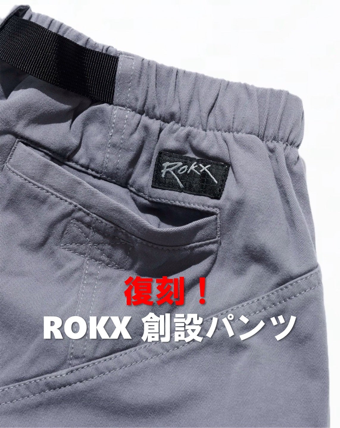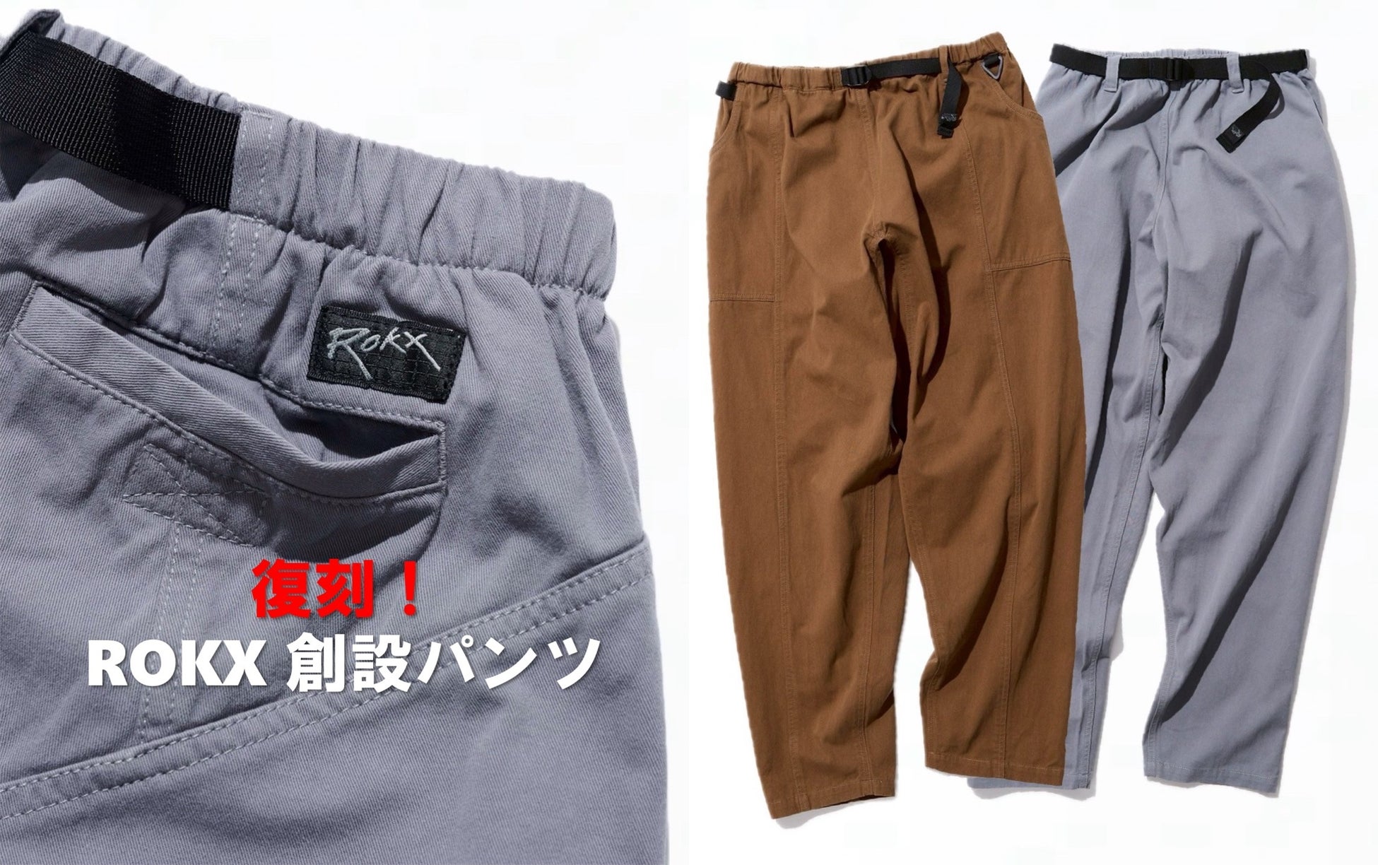 人気のROKX復刻パンツが再入荷!伝説のクライマーが考案した独特なラインと極太スタイルのパンツ!4/28(月)より販売開始!