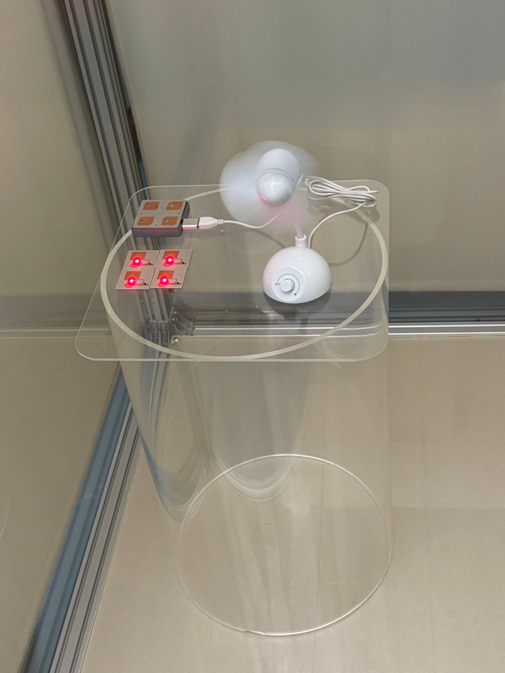 安全性にも配慮し、展示では透明な電磁波シールドフィルム(※)で囲ったアクリルケースを使用するため、人体への影響なく安心してご見学いただけます。