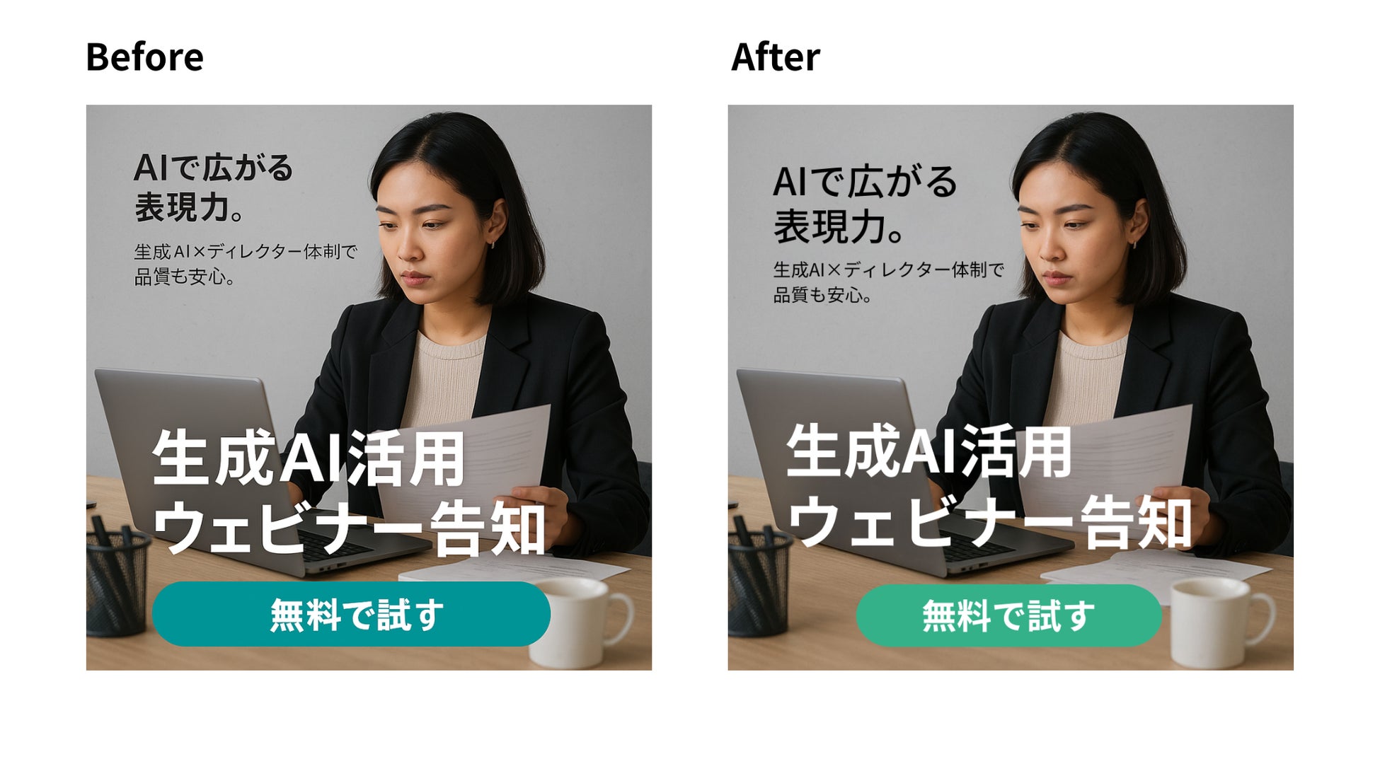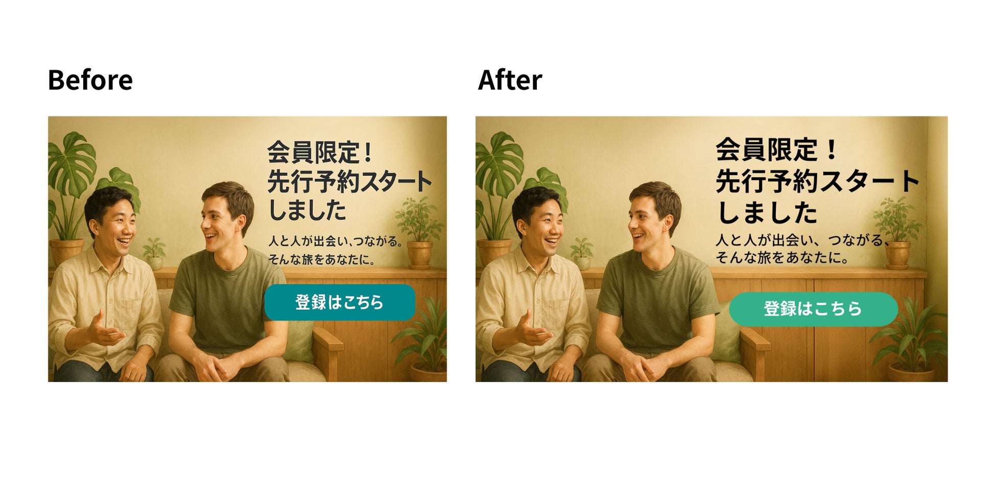 左側の画像が生成された画像で、右側の画像ロコアシのアシスタントで修正を実施した画像です。右側の画像を納品させていただきます。